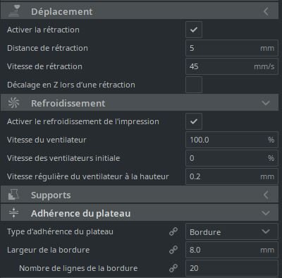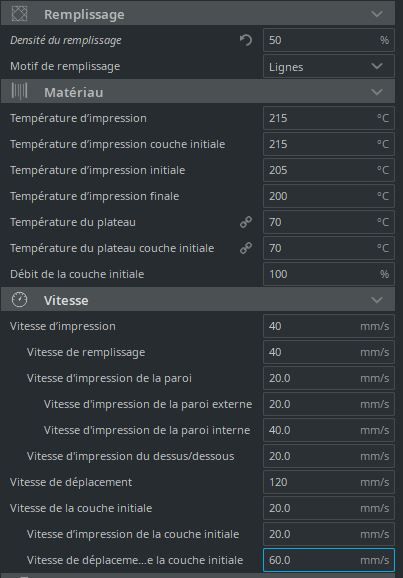 lynyrd Posté(e) Février 14, 2021 Auteur Posté(e) Février 14, 2021 (modifié) Le 12/02/2021 at 19:56, Savate a dit : de régler avec un ticket de cb, le papier est plus fin J'ai réglé avec du papier de caisse, l'extrudeur a été calibré. Voici les réglages de base dans Cura pour du PETG générique: Modifié (le) Février 14, 2021 par lynyrd