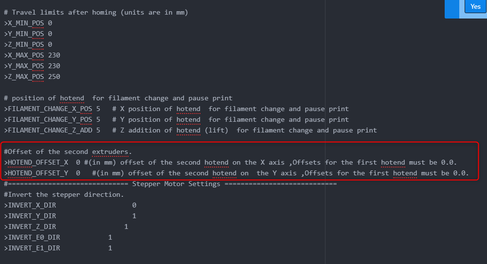 je me dit que même avec #define SINGLENOZZLE si il y a un offset sur l'extrudeur le firmware le prend en compte ... il faudrait faire des tests sur une release de marlin pour avoir plus de certitudes car quand je regarde la déclaration sur marlin 2.0.9.1 cela ne ressemble pas vraiment a se qu'a mi @Azzedesign en capture d’écran ... (Edit arf je viens de comprendre c'est le fichier .ini ou .cfg de config ... et pas le Configuration.h ...)