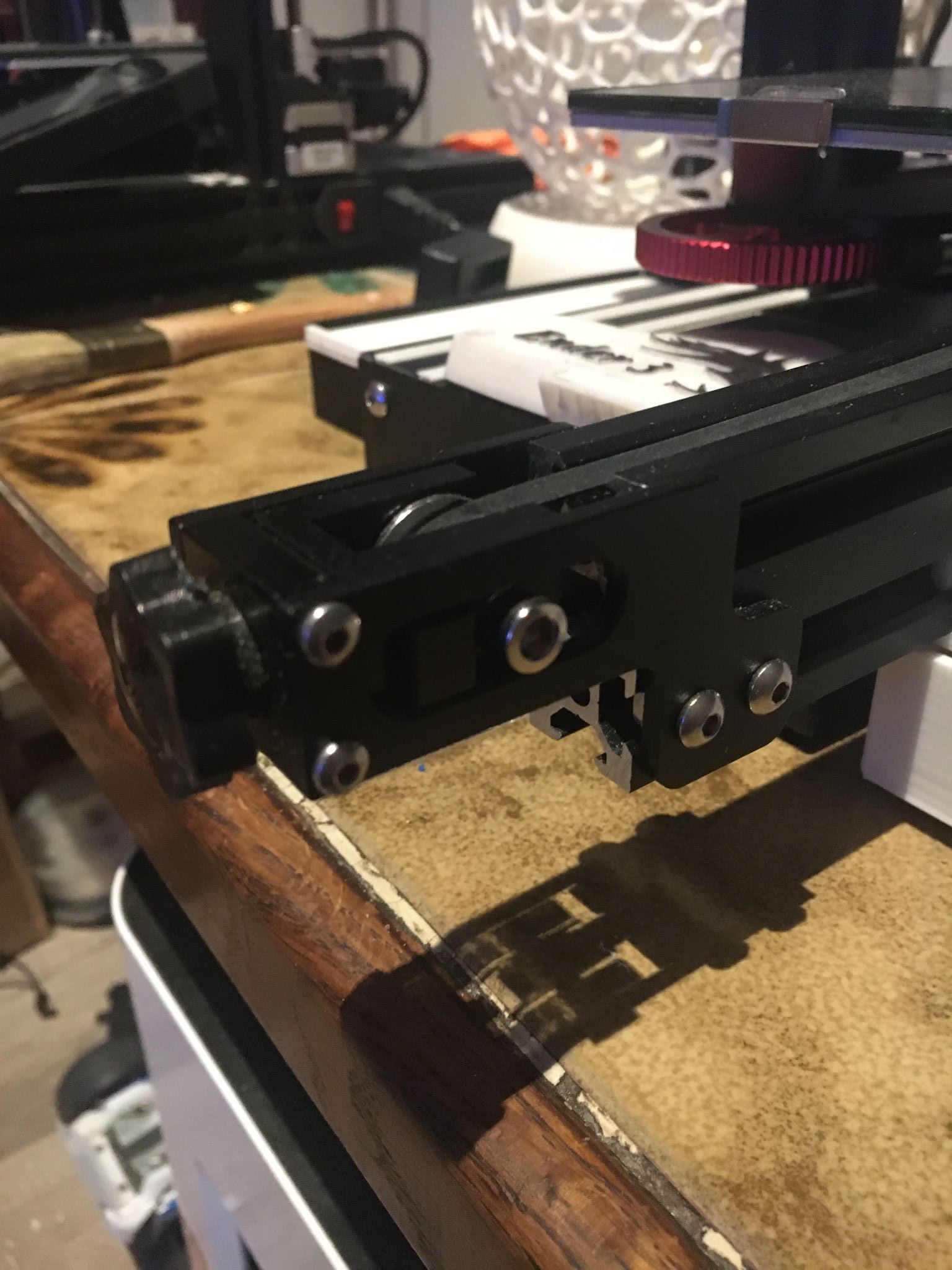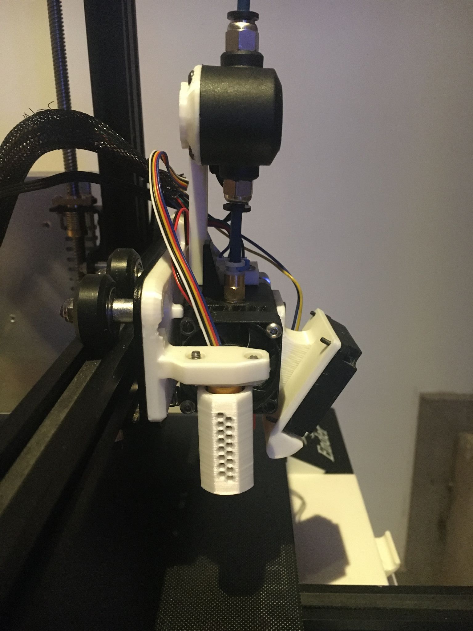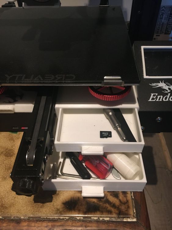 Morganne46 Posté(e) Décembre 3, 2021 Posté(e) Décembre 3, 2021 (modifié) Je présente ma Ender 3 bien modifiée, place à la liste des modifications avant les photos, elle à subis pas mal d'opérations Pourquoi Ender3 V4 ? Parc qu'elle en ais à ça 4 ème modifications, et cette fois-ci, je ne la touche plus, elle à asser eux de modifs. Liste: Carte mère Bigtreetech SKR mini E3 V2.0Ecran Bigtreetech TFT35 V 3.0 Détecteur de fin de filament Bigtreetech smart filament sensorExtrudeur Bigtreetech H2 Module Wifi Bigtreetech piloté par PronterfaceButé en silicone pour le bed (remplace les ressort) Roues en Alu BlTouch 3.1 officiel PTFE Capricorne Double axe Z (pas encore synchronisé, mais ça arrive) Ressort d'axe Z double filetage Tendeurs de courroies plateau et axe Z Verre Créality (poncé) J'ai fais le tour, oui je suis asser fan de Bigtreetech Place au photos: Mes deux bébés Modifié (le) Décembre 3, 2021 par Morganne46 4 1