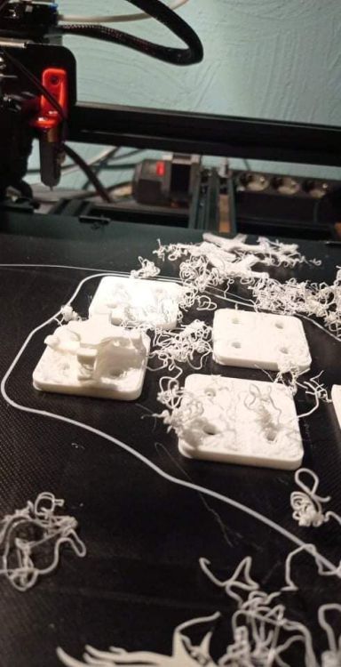 volvering Posté(e) Décembre 6, 2021 Posté(e) Décembre 6, 2021 Bonjour tous le monde, je viens de passer sur Cura, j'ai réglé mon bed et j'ai calibré mon extrudeur. J'ai eu un bouchage il y a quelques temps et maintenant c'est ok, maintenant un truc reste en suspend, c'est que mon extrudeur claque de temps à autres, et que je n'ai jamais su démonter mon tube ptfe. J'ai donc essayé de lancer l'impression de 4 supports et d'une équerre, tout c'est bien passé sur les 5 premiers mm et puis d'un coup c'est parti en vrille. j'ai demandé un remplissage à 60%, T* fil 208, t° bed 60, vitesse 40, demande d'épaisseur de cloisons à 1.2mm. Auriez vous une piste pour m'aider ?