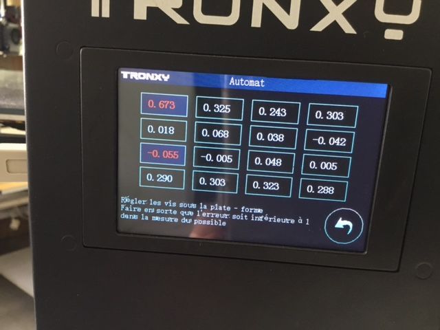 Daniel U10 Posté(e) Juin 24, 2022 Auteur Posté(e) Juin 24, 2022 (modifié) Il y a 5 heures, fred5976 a dit : si par curiosité tu as fait défilé les lignes "logs" Là pour moi c'est carrément de l'hébreu, ça fera partie d'un apprentissage ultérieur et nécessaire sans doute, mais pour le moment, si je vais y voir c'est vraiment par curiosité que je qualifierais d'esthétique... d'ailleurs est-ce qu'il existe un bon manuel de débutant pour ça? du genre "les logs pour les nuls" que tu pourrais me recommander? J'accroche plus facilement avec un article sur la physique quantique ou sur l'astrophysique qu'avec ce charabias touffus écrit en Volapuk... d'ailleurs avec la physique il y a souvent beaucoup d'humour, mais avec ces lignes de codes, j'ai un peu de mal à me fendre la pipe... Il y a 5 heures, fred5976 a dit : Pour le capteur, pour le mettre droit, une ruse de sioux, J'adore les ruses de sioux, et effectivement les rondelles c'est une bonne idée, et justement j'en ai... mais juste une question c'est bien une clé allen de 3 ? donc une distance de 2.45mm... car en fait avec la buse au plus près du plateau même 2.45 ça ne passe pas, il faut redescendre le plateau que quelques dixièmes... Alors j'ai fait la manip, et j'ai refait tout le circuit, Z, nivellement manuel et auto... et au final alors qu'avec la feuille de papier j'avais un niveau nickel, meilleur que tous ceux que j'ai eu jusqu'ici, pas de trou ni de bosse au milieu du plateau, en principe je m'attendais à un joli tableau du genre tir groupé... Et voilà le résultat... le pire que j'ai fait jusqu'ici... quand je dis que je ne vois pas la corrélation entre l'action sur les molettes et le résultat qui s'affiche, je suis même très loin du compte... Alors comme je ne vois pas comment agir pour équilibrer tout ça, je reste un peu en attente... En attendant, pour le reste, Il y a 5 heures, fred5976 a dit : tu as dans Cura une extension "Calibration Shapes". c'est pénible tous ces sites uniquement en anglais... mais bon j'ai quand même trouvé quelques trucs intéressants dont j'ai téléchargé les STL, merci du tuyau. pour la mise à l'échelle je connais je l'utilise avec Prusa couramment. Il y a 5 heures, fred5976 a dit : tu n'as pas une grosse correction sur X-Y mais par contre Z, il a mangé. A NE PAS OUBLIER, SI TU TOUCHES AUX STEPS/MIN DU Z, REFAIRE UN "DECALAGE Z" Alors oui le XY est très bien pour le moment, lorsque je ferai des impressions plus précises je ferai des mesures plus fines et j'ajusterai éventuellement en conséquence, je ne me sens pas encore assez à l'aise en 3D indépendamment de mes soucis de réglages, mais par la suite j'aimerais bien entreprendre une grosse mécanique céleste, avec plein de pignons et d'engrenages... donc là effectivement plus je pourrai être précis mieux ça vaudra...mais pour le moment j'ai une tolérance assez flexible, je l'adapterai au coup par coup. en revanche le Z il faut faire quelque chose... Mais que ce soit pour X,Y ou Z, je ne sais absolument pas comment on règle ça...je ne l'ai jamais fait sur l'Alfawise car je n'en ai jamais eu besoin... coup de bol? peut être... aucune idée... ou alors c'est une super bécane juste un poil trop légère sur l'échantillonnage, la motorisation et la construction par rapport à ses dimensions de plateau... Donc oui, si tu me dis où se trouve la commande et dans quelle mesure on agit pour la correction ça m'intéresse au premier chef. Il y a 5 heures, fred5976 a dit : c'est bientôt fini, t'auras plus besoin de nous. Je suis sensible aux encouragements, merci, mais faut pas vendre la peau de l'ours... je distingue juste un peu de lumière au fond du tunnel mais je crains encore les éboulis... A propos du Nouveau capteur Tronxy-Black-TR , c'est justement celui que j'ai... le précédent était bleu il me semble? du moins c'est celui que j'ai vu sur l'autre machine en exemple là où je suis allé monter la mienne... mais je serais bien infoutu d'en dire plus... Juste un dernier truc, Il y a 5 heures, fred5976 a dit : Si tu as la synchro des Z, alors justement c'est l'une des choses que je pensais (voire que je pense encore faire), mais j'ai vu ou lu tout récemment que finalement ce ne serait pas une si bonne idée... voire même que ce serait une fausse bonne idée... Alors selon ce que j'ai compris, en fait dans certains on prend le risque de brider la machine qui peut avoir besoin de "compenser" en agissant indépendamment sur les deux moteurs du Z... et ça n'est pas idiot si on a un capteur intelligent qui est capable de corriger des variations de niveau... Donc je suis dans l’expectative... ceci dit, je sen,s très bien sur ma machine qu'il y a une forte tendance au déséquilibre, comme si le plateau cherchait à pencher d'un côté, donc accoupler les tiges filetées pour les synchroniser reste une idée séduisante... au moins jusqu'à ce qu'on ait effectivement un capteur intelligent, reste quand même à définir ce que pourrait être l'intelligence d'un capteur... C'est tout pour ce soir, je vais quand même essayer de corriger le résultat de cet auto-levelling en attendant, c'est d'ailleurs un système qu'on dit intelligent... c'est peut être pour ça que ça foire... Bonne soirée. Modifié (le) Juin 24, 2022 par Daniel U10