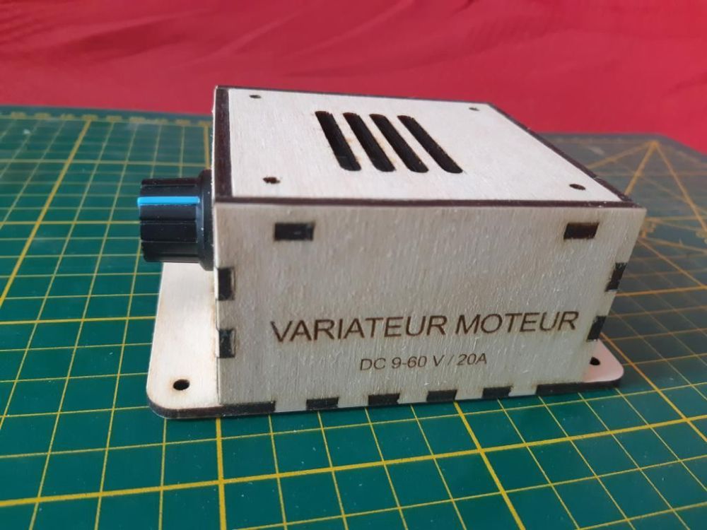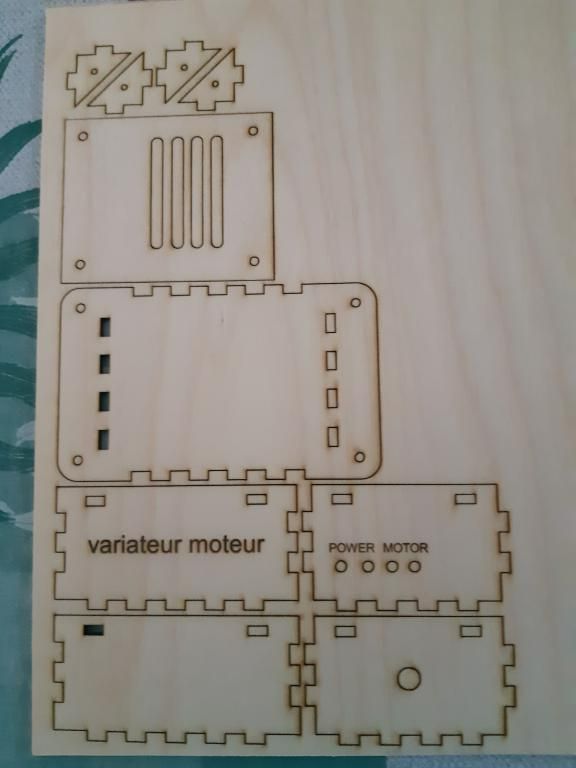 vap38 Posté(e) Juin 29, 2022 Auteur Posté(e) Juin 29, 2022 (modifié) Bonjour, @Motard Geek Voici un nouveau test de découpes complexes avec de nombreuses pièces à découper avec de multiples créneaux La découpe est facilité le démontages des pièces et facile sans adhérences de fibres de bois rebelles. Je suis très satisfait du montage air assist et aspirateur de fumées. Nous pouvons assembler les pièces soit par collage ou par insertion mécanique ajustée en réglant le correctif de brulage en exemple 0.1mm). Si vous réalisez le montage par collage il suffit de régler à zéro le correctif de découpe. J'ai réalisé une boite pour installer un variateur de puissance pour moteur DC ou autre utilisation. Conclusion la découpe laser est plus productive et rapide pour créer des objets en exemple découpe laser du boitier 15 minutes. c'est super Observation les découpes de droites sont un peu marquées car je ne me suis pas rendu compte que la pièce en bois était fortement bombées au centre. (flèches de 1,5mm) c'est beaucoup ! d'où l'importance d'avoir des planches de bois bien planes. a+ Modifié (le) Juin 29, 2022 par vap38 4