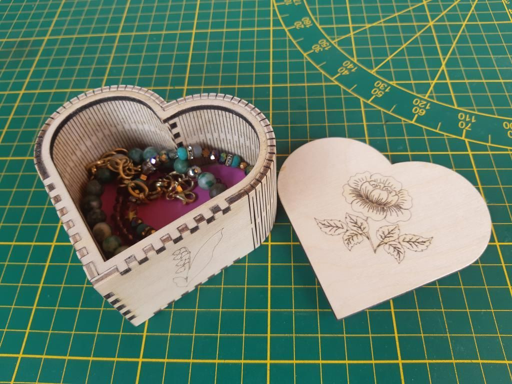 vap38 Posté(e) Juillet 1, 2022 Auteur Posté(e) Juillet 1, 2022 Bonjour, Voici une boite à bijoux cadeau pour mon épouse elle est très contente je pensais qu'il y avait une difficulté technique pour découper et assembler les cloisons courbes et bien tout c'est bien passé. Il faut surtout bien simuler le montage pièce par pièce pour éviter une erreur d'assemblage. Petite recommandation bien chanfreiner les angles pour éviter une éventuelle fracture des petites encoches. a+ 3