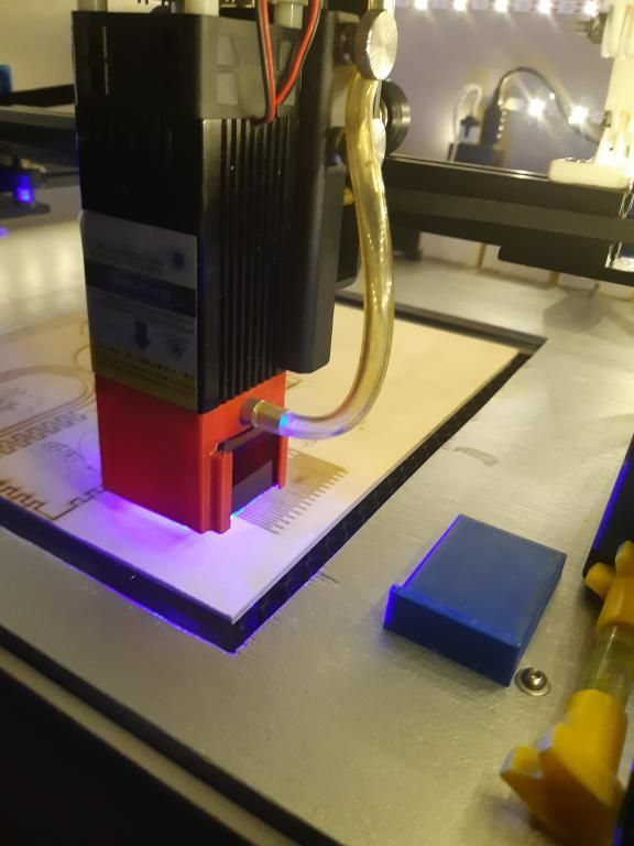 vap38 Posté(e) Juin 27, 2022 Posté(e) Juin 27, 2022 (modifié) Bonjour, @Yo' Motivé à réaliser un air assist j'ai conçu un déflecteur modélisé avec soins qui correspond à ma tête de gravage 10W SOVOL. La buse déflecteur est imprimée en PLA rouge avec un insert en aluminium pour connecteur un tube souple en PVC. La pompe utilisée est La pompe 70L/mn . Le test est concluant les contours du gravage sont bien nets et le bois reste sans traces de brulures périphériques La partie verso est aussi très correcte sans marques de brulures. La conjugaison de l'air assist et de la grille nid d'abeille concourent à une qualité de gravage et de découpe remarquable. Ci-joint un test de gravure de Pinocchio qui ne s'aurait mentir car son nez reste immobile donc c'est parfait. Les moins du déflecteur !! la matière est un obstacle optique impossible de voir à travers quand je veux pointer le contour d'une découpe. Le déflecteur fait bien son office de protection pour les yeux. J'ai commandé un cache rouge pour simplifier le montage afin de rendre visible le pointeur pour visualiser la fenêtre de découpe... La prochaine étape concevoir un déflecteur sans les parois latérales et placer un optique de protection réglable.le cache de protection optique rouge amovible. Ci-joint un stl pour se donner une idée de la forme du déflecteur. Bon amusement cette modification est performante. SOVOL_air_assist.STL Modifié (le) Juin 27, 2022 par vap38 4 1