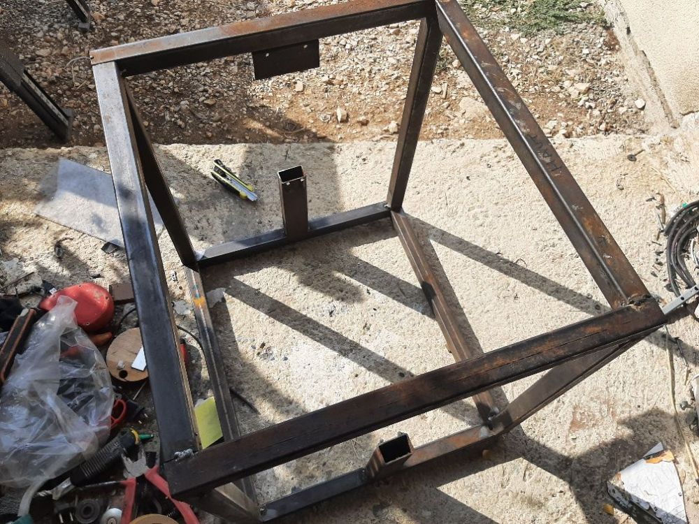 pat30 Posté(e) Septembre 14, 2022 Posté(e) Septembre 14, 2022 Salut à tous, comme déjà évoqué il y a longtemps, pour ne pas dire trop longtemps ma BIGDELTA commence sérieusement à accuser le coup de ses 7 ans et suite à ce sujet qui part ailleurs et fermé, (j'avais pourtant dit qu'il fallait que ça murisse dans ma tête donc si un modo pouvait ajouter un lien vers ici ça serait cool) je me lance dans sa remplaçante. Cette fois ça sera une cartésienne mais avec un cadre en cube (d'ailleurs je sais pas si ce sujet doit être ici ou dans la section cubique...) , et comme à mes habitudes, la construction sera réalisée avec le maximum de récupération. On va commencer par son petit nom, je ne suis pas partie bien loin, ce sera la Steelframe, celle-ci reprend les grandes lignes d'une Ender5, j'avais imaginé cette option avant de connaître la machine de Creality, du coup je sais que c'est viable: - Cadre cubique entièrement en acier soudé, du 30X30 car j'avais des chutes en stock, - Chemin de roulage en cornière Alu, - Axe Z en tige de 12mm (récup sur un lit électrique) - Ramps 1.4 pour l'électronique (récup de ma delta). Taille du cadre 500X500X500, Taille d'impression 360X360X200 de hauteur (limitée par les vis de récup), un peu juste en hauteur mais je reprendrai cette partie quand je trouverai un lit plus grand. Le but, remplacer la delta par une machine plus sûre, sans perdre trop en vitesse d'impression et à voir si cela sera suffisamment rigide pour faire un peu de fraisage (PCB, Plexi...), découpe vinyle, éventuellement gravure laser. Quelques étapes: - la soudure, j'ai commencé par faire les carrés du haut et du bas auquel j'ai ensuite soudé les entretoises pour en faire un cube, en tant que bon soudeur du dimanche après-midi, cette étape m'a fait comprendre à quel point le sens des soudures est important pour garder un bon équerrage, - la fixation des cornières alu sur l'acier, pour être le plus parfait possible, j'ai monté l’ axe X provisoirement, j'ai commencé par coller ( colle polyuréthane) les cornières extérieures au cadre sur lesquelles j'ai fait rouler les chariots avec afin de corriger les petites imperfections du cadre acier s'il y avait, un jeu de cale m’a permis de les coller à la hauteur désirée, après séchage j'ai fait de même pour les cornières intérieures, là même pratique a été utilisé pour le chemin de roulage du bed mais vu que je n'avais plus de roulettes à fente j'ai dû mettre 2 cornières l'une contre l'autre, - les bras du BED sont eux réalisés avec de l'alu de 40x100 (grosse règle de maçon). A vos remarques. Quelques photos, le reste sera au fur et à mesure de l'avancement. 3 1