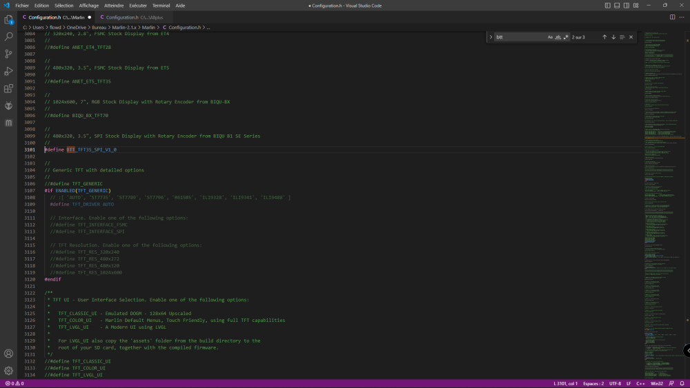 flowd38 Posté(e) Février 12, 2023 Auteur Posté(e) Février 12, 2023 (modifié) pour la config de mon écran qui est un BIGTREETECH TFT35 V3.0.1 je décoche la ligne 3101 et 3170 Modifié (le) Février 12, 2023 par flowd38