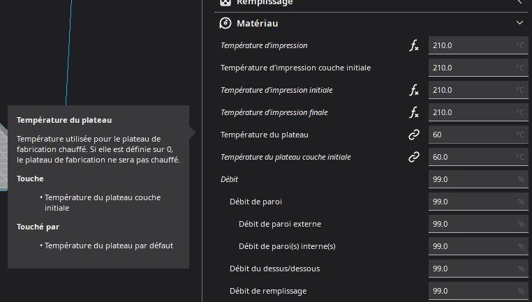 Savate Posté(e) Avril 4, 2023 Posté(e) Avril 4, 2023 il y a 2 minutes, Carlito06 a dit : Bonjour, dans cura, comment indique-t-on qu'on ne veut pas faire chauffer le lit? si je met 20° et qu'il fait 25° et bien il attend que la t° baisse... ya pas une valeur qu'il considère comme à ignorer? met 25° mais qu'est ce que tu imprimes sans chauffe du lit ? chocolat ? bonbons ? caramels ?
