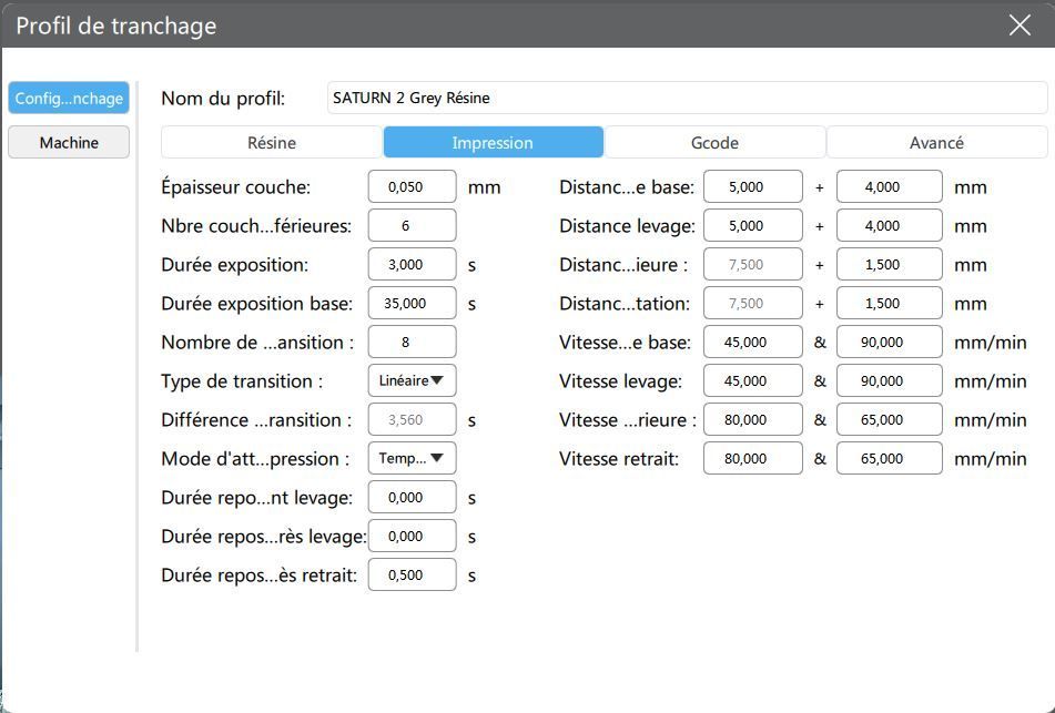 Bonjour à tous et à toutes j’aimerais savoir quels sont les meilleurs paramètres à mettre sur chitubox pour la Saturn 2,