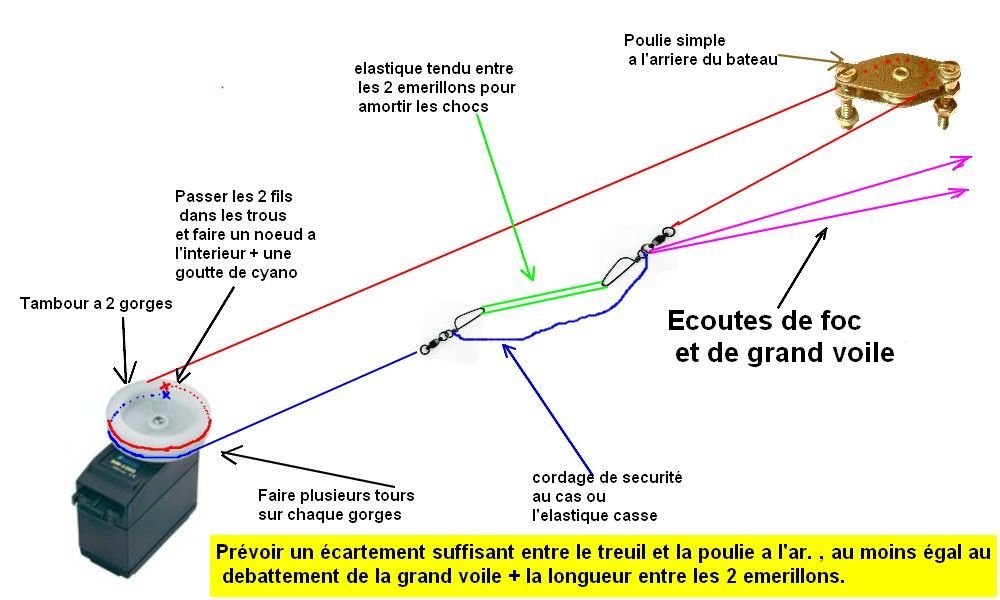 Funboard29 Posté(e) Aout 31, 2023 Posté(e) Aout 31, 2023 Il y a 15 heures, Hedd a dit : Ton père fabriquais quoi comme bateau plus exactement? Surtout des bateaux de voyage en aluminium, dériveur ou quille relevable. Il avait commencé à travailler l'epoxy, c'était novateur fin 60 début 70. Il y a 15 heures, Hedd a dit : je comptais utilisé de la résine époxy pur, avec surement un peu de charge pour épaissir le mélange., Tu viens de réinventer la colle epoxy . Tu peux toujours essayer mais les tentatives que j'ai faite, et j’emploie l'epoxy depuis très longtemps, ne m'ont jamais convaincu avec n'importe quel filament. Une histoire de rigidité mais surtout de collage et non pas de soudage. En plus il faut maintenir parfaitement les 2 parties durant le séchage Avec la cyano et l'accélérateur appliqué avant la mise en place c'est fait en 2 ou 3 secondes. Laisse bien sécher avant de peindre, sinon tu auras une réaction chimique qui laissera des traces. Je te met ici quelque exemples de circuits d'écoute. Le premier est le plus efficace et se retrouve sur la plupart des IOM de compétition. Mais il nécessite de changer régulièrement l'élastique qui se dégrade. En plus il faut trouver l'élastique idoine, pas évident.