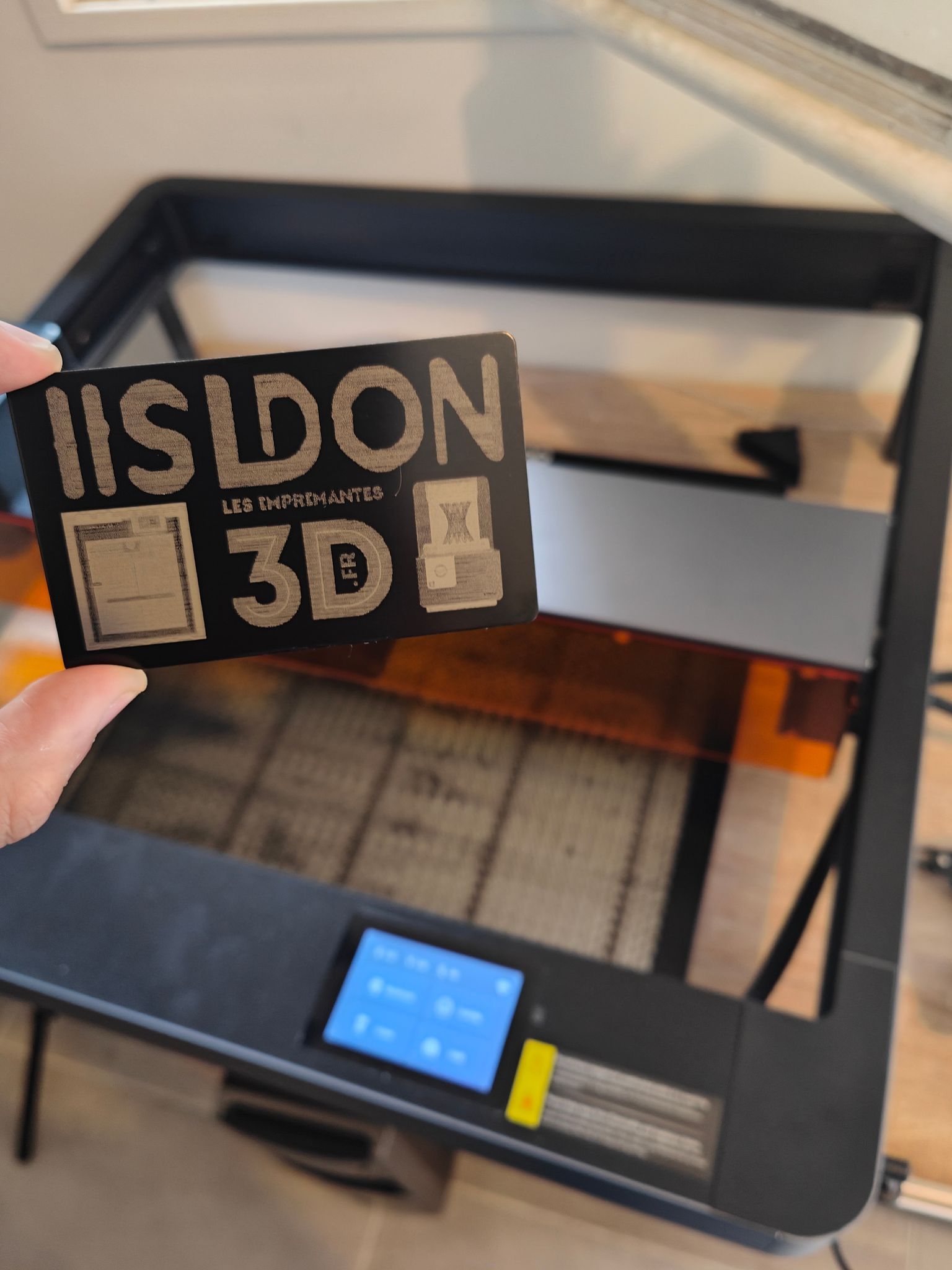 isidon Posté(e) Octobre 22, 2023 Posté(e) Octobre 22, 2023 (modifié) Toute ressemblance de ce titre avec un autre titre du sujet n'est que pur hasard ! (qui a dit menteur ?) Pour suivre l'exemple de @PPAC, j'ai commencé à faire mumuse avec mon graveur laser. Suivant les conseils des habitués, j'ai utilisé Lightburn sans même tester les autres, parce que flemme. J'ai fait comme à mon habitude, j'ai appuyé sur tous les boutons et j'ai regardé ce que ça faisait. J'ai rentré moi même les paramètres de la machine (dimensions), j'ai dégagé l'espèce d'auto home parce que le fait cette machine n'ai pas de capteur de fin de course me fait PETER un plomb, du coup elle démarrera là ou je la mettrais. J'ai aussi fait mumuse avec le système de calque de Lightburn en rentrant principalement les valeurs données par le manuel Elegoo, j'ai quand même fait quelques tests car je trouvais que les paramètres recommandés n'étaient pas très "marqués". J'ai suivi les conseils de @fran6p et je n'utilise l'air Assist que pour les essais de découpe et pas les gravures (durs quand on fait faire les deux en même temps). Voilà mes réalisations, toutes les pièces ont été achetées sur amazon en cliquant sur les liens recommandés ici et là, majoritairement ceux de @fran6p Pour suivre vite fait l'exemple de PPAC, on va parler un peu du montage et de l'unboxing, mais vite fait parce que généralement ça me soule de le faire Montage : 2 vis en plus par paquet au cas où (j'aime) Visser les pieds n'aurait pas été une partie de plaisir si je n'avais pas un aimant Un ptit cache pour aller sur la carte mère à la toute fin ? Non, c'est trop cher ? Ce petit jeu sous l'emplacement de la carte SD m'a rendu fou Voyez plutôt... C'est pas ma carte SD pour rien, elle passe son temps à rater le trou Mes projets : J'ai donc fait un premier test sur l'échantillon de bois fourni avec la machine, après j'me suis procuré les éléments moi même parce qu'ils ont fait les radins sur les échantillons. (au passage sur ma clé, aucun fichier déjà préparé contrairement à ce qui est dit sur la notice). J'me suis ensuite fait ma carte d'accès pour venir boire le café dans les bureaux, puis j'ai testé de graver une spatule pour l'impression résine. J'ai ensuite fait quelques tests d'exposition et un test de découpe suivi d'un test de gravure sur le bois, puis en deuxième partie j'ai refait une découpe autour du dessin, j'ai bien conscience qu'avec les calques on pouvait tout programmer en une fois, mais vu que je ne sais pas où je vais, je fais un truc puis je réfléchis à un autre truc. Dans la semaine je vais tester sur des assiettes en ardoise, il n'y a pas de recommandation avec cette matière sur la notice, donc j'envisage des tests proche de la carte métal (entre 2000mm/mn et 6000 mm/mn et 25 à 50% de puissance pour mon laser 20W). Voilà je n'ai pas encore fait sur papier coloré parce ça me fait pas rêver en fait, bien que sur le groupe facebook je vois des dessins assez beau sur du papier bleu... Ok, en fait ça me fait rêver, mais j'ai flemme de m'en procurer :d Modifié (le) Octobre 22, 2023 par isidon J'avais écris en dormant 4