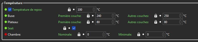 Concernant les réglages, j'ai modifié uniquement la température et refroidissement :