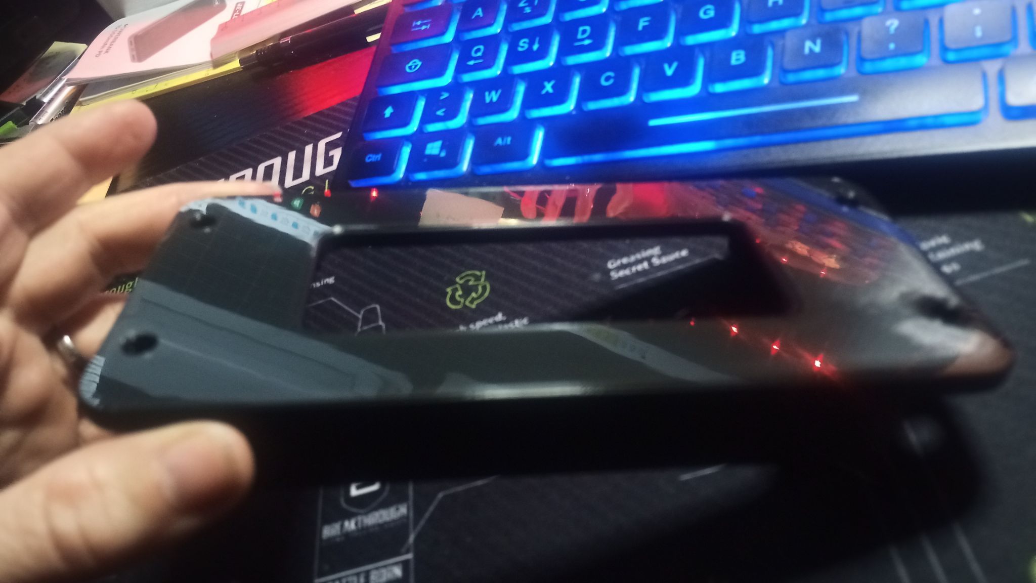 Ironblue Posté(e) Mars 15, 2024 Auteur Posté(e) Mars 15, 2024 Plaque PET (effet carbone) et PEO, pas encore essayée, elle est beaucoup plus épaisse que les 2 autres, 0.80 pour les 2 première achetée et 1.20 pour celle la, du coup elle est moins "souple" que les autres. J'ai pas enlevée le film de protection qui est dessus pour les photos, la surface est mat en dessous. 1