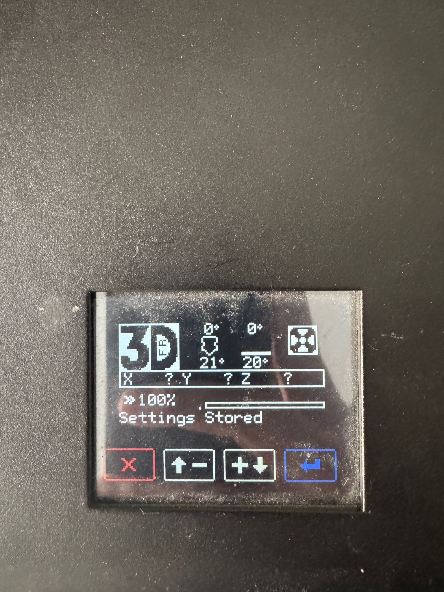 pommeverte Posté(e) Septembre 25, 2024 Posté(e) Septembre 25, 2024 il y a 13 minutes, maxgame111 a dit : J'ai essayé en créant un fichier texte et le renommant "longer3D.UI" mais la grosse barre verte ne charge pas de mémoire, c'est normal. Après ça, l'écran devrait afficher les menus. Est-ce que tu es sûr que tu as bien un écran V1.2 (voir ce message)? en passant, tu peux essayer de flasher un firmware du message (celui adapté à ton écran), histoire de voir si c'est un problème de compilation