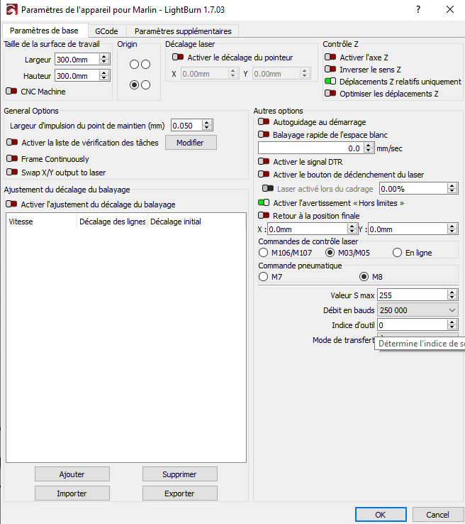 FredRCraptor Posté(e) Décembre 7, 2024 Auteur Posté(e) Décembre 7, 2024 où puis je trouver cette option (dans laser grbl par exemple? je n'ai jamais trouvé rien de tel