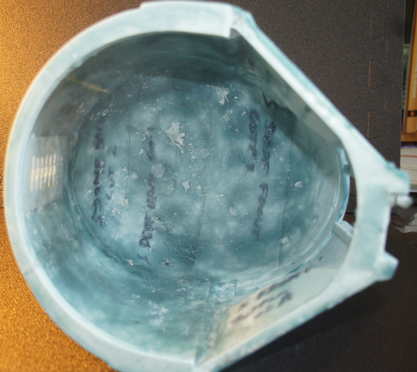 migreur Posté(e) Janvier 3, 2017 Auteur Posté(e) Janvier 3, 2017 (ponçage en cours.... les photos ne sont qu'un point d'étape) - collage OK - fibre de verre + résine polyester à l'intérieur presque fini de partout (je dois encore renforcer les "joues", même si c'est déjà très solide là). Là j'ai insisté sur les zones de jointures des pièces. Si le casque doit casser, ce ne sera pas là ^^ - fibre de verre + résine polyester à l'extérieur sur les endroits à rattraper (je pense que certaines pièces sont très très légèrement foireuses à cause du plateau pas toujours horizontal, mais je ne suis pas sûr) - résine polyester partout à l'extérieur pour protéger le PLA, et remplir les stries de l'impression. A titre d'info : la résine polyester comble très bien les stries de surface du PLA. Pas de réaction négative du plastique, et bonne adhésion sur le support. - ponçage (ponceuse circulaire + ponçage à la main) : en cours..... là je n'ai que poncé les grosses imperfections "positives" (en bosse) : je dois combler les imperfections "négatives" (en creux) à l'aide de gel coat. Pour le gel coat (blanc), je dois ramener le pot en magasin et l'échange contre un gel coat translucide que je chargerais de pigments métallique pour donner un aspect métal au casque. Après les couches de peintures, je donnerais des coups d'éraflures caractéristiques de ce casque pour éliminer la couche de peinture et atteindre la couche de gel coat métallique. 4