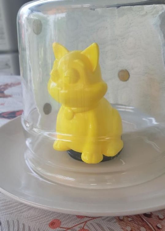 vap38 Posté(e) Juin 13 Auteur Posté(e) Juin 13 Bonjour, voici une méthode de lissage simple et efficace en reprenant des idées générales. J'ai imprimé un sujet en ABS jaune en 2 murs remplissage 5% sans aucune difficulté d'impression. les préparations pour les vapeurs d'acétone : Un bocal en verre un peu plus grand que le modèle une assiette plate un support en plastique Ø80 hauteur 15 mm environ 12 aimants plats Ø16 épaisseur 2mm du papier sopalin doublé plié en deux Méthode - Insérer le sopalin maintenu par des aimants en laissant une fenêtre pour visualiser l'évolution du lissage. (ensuite imbiber le sopalin avec de l'acétone ) - Placer la rondelle en plastique dans l'assiette ensuite le modèle sera recouvert du bocal - placer de l'eau dans l'assiette hauteur maxi 10mm. Le but de l'eau c'est de créer un joint étanche pour éviter l'évaporation à l'extérieur de l'acétone car il est plus lourd que l'air. Il se formera des bulles dans l'eau c'est normal c'est la compensation de la pression atmosphériques! Surveiller la progression du lissage au travers du bocal, la durée d'exposition est d'environ 2 h, renouveler l'imprégnation du sopalin si le sujet demande plus de lissage pendant cette durée. ci-joint quelques photos A+ Francis 4