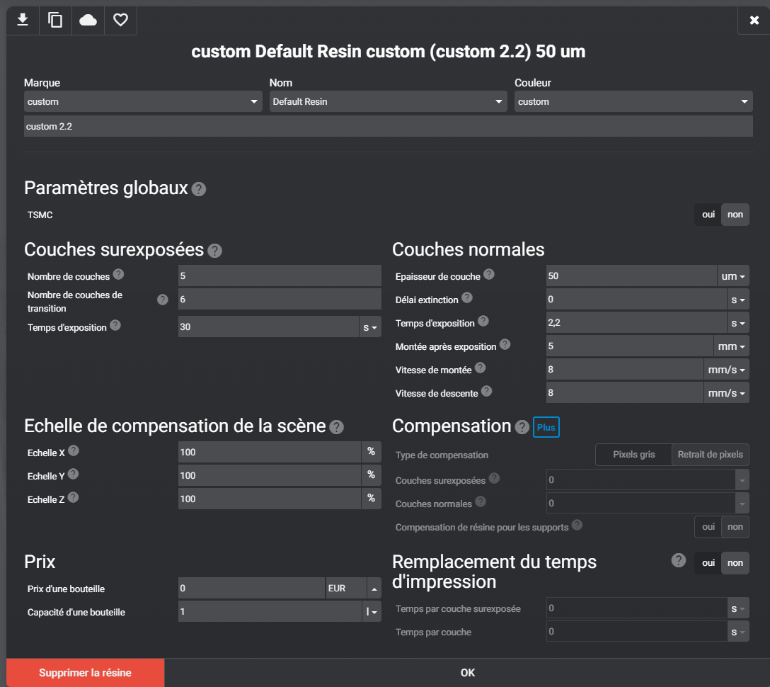 Marcouillou Posté(e) Juin 10 Auteur Posté(e) Juin 10 Bonjour @Krl, Merci pour ta réponse, je te mets ci-dessous les paramètres de la résine, de la génération des supports, des screenshots de la position du plateau ainsi qu'une photo des résultats de l'impression, dis-moi si tu veux une autre info, j'utilise Lytchee au passage. Je ne suis pas convaincu que les supports soient en cause, dans la mesure où la distorsion n'est pas côté plateau, mais peut-être me trompe-je, je suis très peu expérimenté en résine. Paramètres de la résine (calibré il y a quelques temps avec le modèle conseillé sur ce forum, avec l'épée, le gobelet etc...): Paramètres des supports: Emplacements: Résultats: Dans le même ordre que sur le plateau ci-dessus: La première planche a été imprimée à plat, et il y a une distortion au niveau du tail (à droite) et le dessins est plus plat que prévu. La seconde, placée légèrement en diagonale, est celle qui a le mieux réussie. Je l'ai peinte depuis l'impression, mais on voit quand même quelques défauts et elle n'est pas bien symétrique au niveau de la forme (encore que c'est assez léger) La troisième, imprimée sur la tranche et bien verticalement est inutilisable. Notez que la partie distordue n'est pas celle qui est du côté du plateau, j'aurai donc tendance à disculper les supports. Il semble d'ailleurs que les distorsions soient toutes plutôt à droite (sur les trois prints), ou en tout cas que plus on va à droite et plus la distorsion est grande. Est-il possible que mon problème vienne de la résine ou du FEP? Le cas échéant, comment estimer la qualité du FEP? (je vais changer de résine de toutes façons) Notez que si quelqu'un est intéressé par le fichier je le partage avec plaisir dès qu'il est finalisé