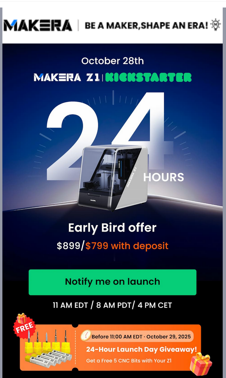 silvertriple Posté(e) Septembre 30 Auteur Posté(e) Septembre 30 (modifié) Au passage, dans un live la nuit dernière quelques annonces sur des éléments à venir : - Makera Studio, un software qui remplacera à terme à la fois Makera Cam et Carvera Controller - Makerables : une plateformes similaire à makerworld mais focalisée CNC - Une option caméra est envisagée pour les Carvera, et sera introduite en natif avec la Z1 Le live est là : Modifié (le) Septembre 30 par silvertriple