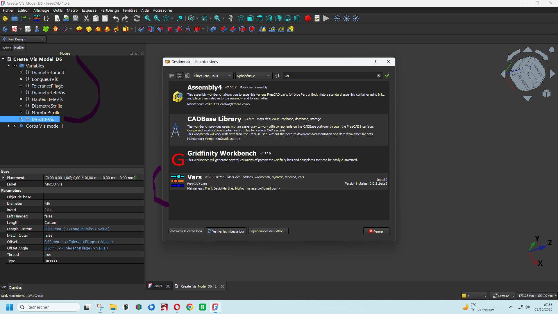 lariflette77 Posté(e) il y a 1 heure Posté(e) il y a 1 heure (modifié) Bojour, Sur la proposition d'un ami qui fait parti d'un club de tir d'essayer de créer un support de fusil. Ceci m'a permi de decouvrir les VarSet et surtout l'atelier Var ce qui permet de modifier les dimensions avec une vision direct du resultat. le lien thingiverse : https://www.thingiverse.com/thing:7159832 Je mets a disposition le fichiers pour ceux qui voudraientt experimenter cet atelier. Create_Vis_Model_D6.zip Modifié (le) il y a 1 heure par lariflette77