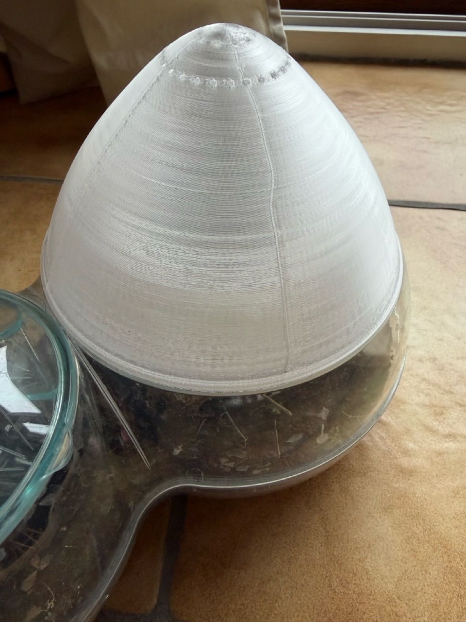 xavax Posté(e) il y a 5 heures Posté(e) il y a 5 heures Bonjour, J'ai dessiné un Dome pour transformer une biosphère en boite a insecte pour ma fille. J'ai essayé de l'imprimer mais il n'est pas trop transparent. De plus il y a 2 coutures qui pourtant n'apparaisse pas dans bambu studio, J'ai mis les couches adaptatives pour tester et plus les couches sont fines plus ça a l'air d'être transparent. J'ai utilisé du PETG bambu avec les réglages par défaut bambu Comment faire mieux ? en mode vase je ne peux pas a cause des trous en haut mais aussi en bas car il me faut quand même un peu de rigidité. Merci pour vos conseils dome biosphere.3mf