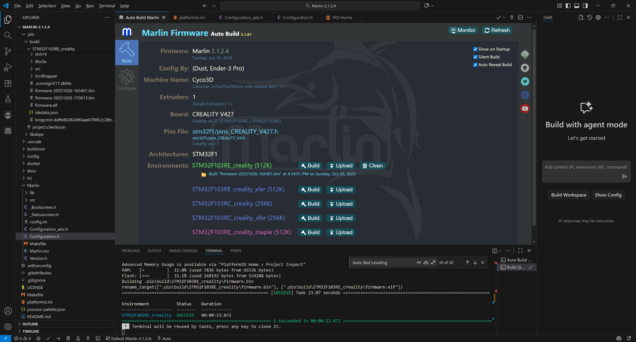 cyco Posté(e) il y a 23 heures Posté(e) il y a 23 heures (modifié) Bonjour, J'ai équipé mon ender 3 pro d'un BLTouch, l'imprimante tourne sous Marlin (2.1.2.4). J'ai suivi un tuto pour le configurer, après avoir résolu un problème de dépendance, le build a bien voulu se faire. sous Cura j'ai rajouté la ligne G29 ; BLTouch dans le GCode de démarrage de mon imprimante. Je lance l'impression, le BL touche semble bien se calibrer (enfin je pense), les temp du bed et de la buse arrive aux valeurs souhaité pour l'impression et là... l'impression se stop... Je mets en pièce mes fichiers de config Marlin si une âme charitable veut bien regarder si j'ai fait une erreur. D'avance merci de votre aide toujours bien utile! Configuration_adv.h Configuration.h BLtouchTest v3.gcode Modifié (le) il y a 23 heures par cyco