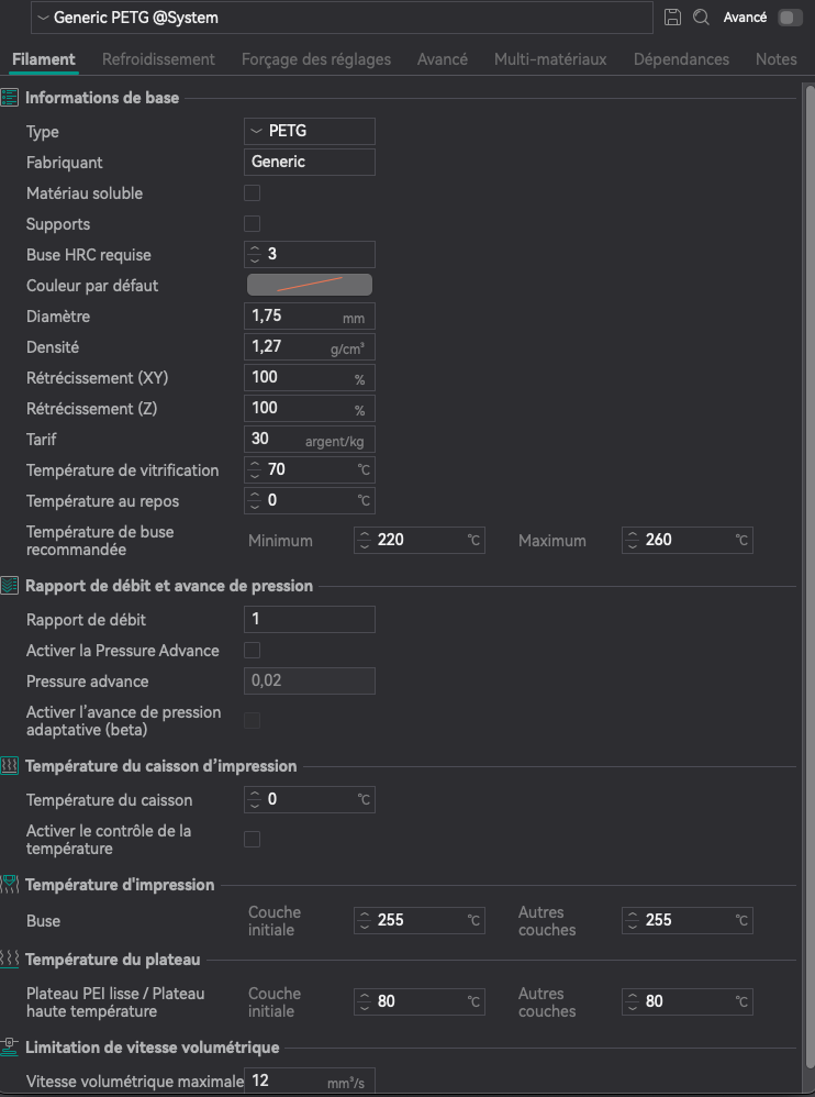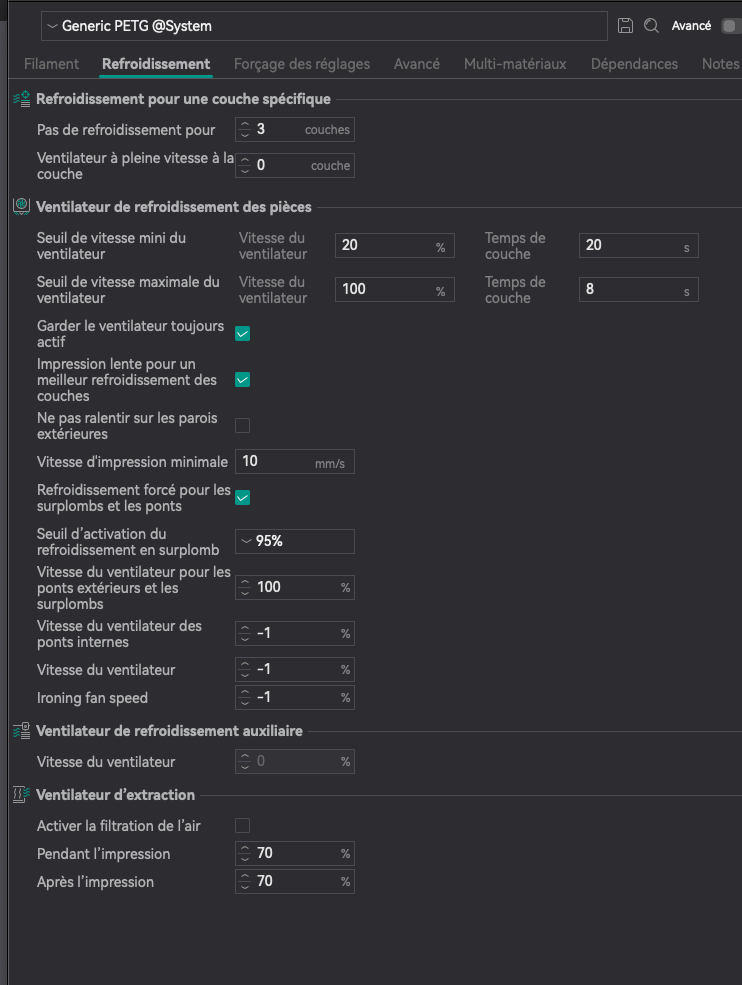bubus Posté(e) il y a 6 heures Auteur Posté(e) il y a 6 heures (modifié) Il y a 2 heures, pat30 a dit : Quelle température ? (plateau et buse) je pense que tu imprime trop froid, et imprime dans le sens de sa hauteur. Tu aura une meilleure accroche au plateau et tu n'aura pas besoin de supports. j 'imprime comme sur la PJ.valeur par defaut Modifié (le) il y a 6 heures par bubus