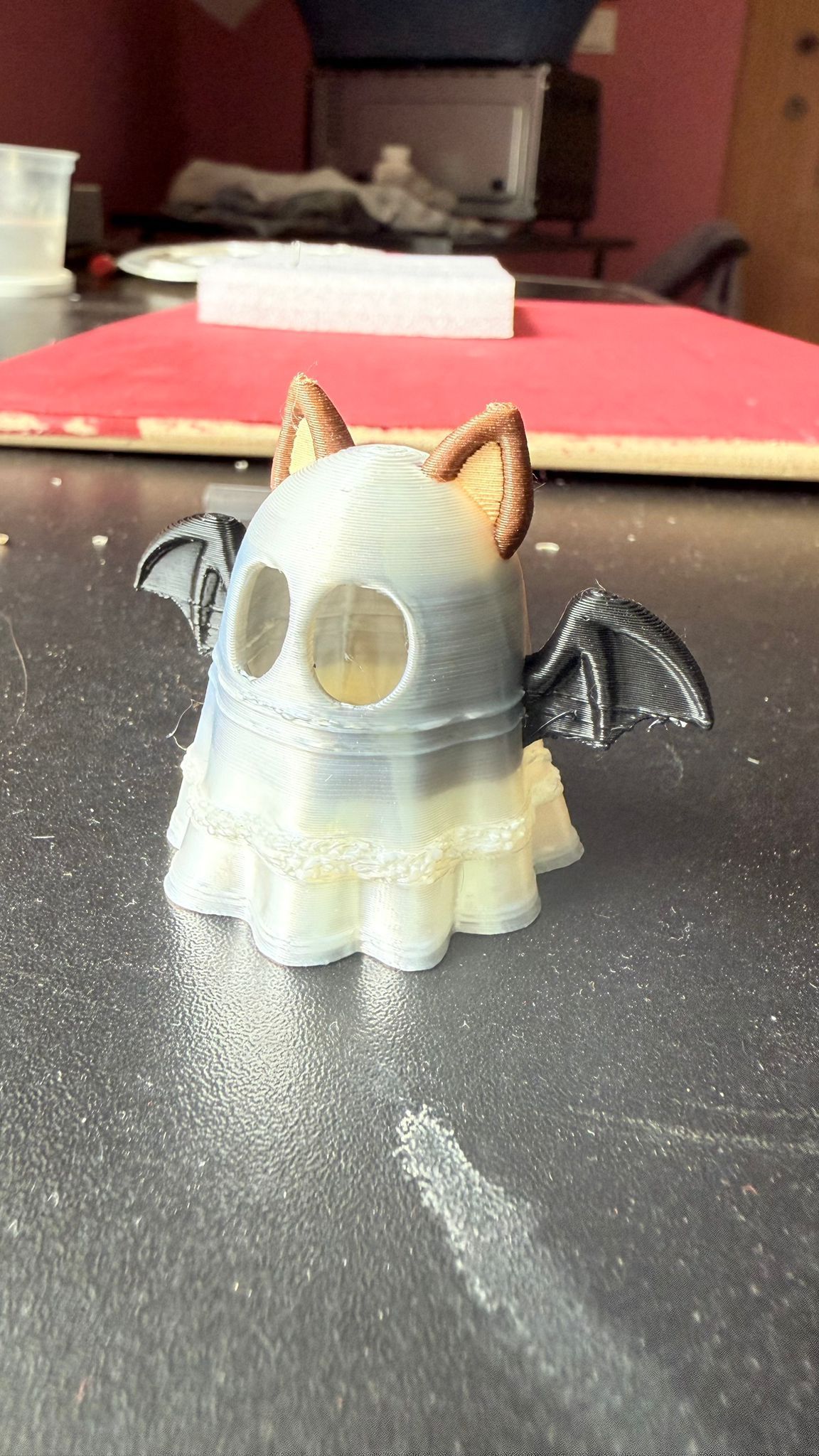 virgie Posté(e) il y a 1 heure Posté(e) il y a 1 heure Bonjour à toutes et tous. Ayant débuté avec anycubic, j'ai décidé de rester avec eux pour tenter le multicolore. J'ai donc acquis une kobra 3 combo. J'ai eu un gros problème de fuite au début mais anycubic m'a renvoyé le nécessaire pour repartir du bon pied. Mais j'ai encore parfois eu de nouvelles fuites : je trouve que la méthode de blocage du hotend n'est pas top et je pense que le problème vient de là. J'ai d'ailleurs modifié la tige métallique pour qu'elle appuie plus dans l'espoir que cela résolve le problème : depuis il est vrai que cela bouge moins donc je croise les doigts. Cependant, je vous écris pour deux problèmes que j'ai avec certaines impressions mais pas toutes. Premier problème : une couleur qui "bave" sur une autre alors qu'il y a bien une purge assez longue de faite. Avez-vous une solution à me proposer ? Deuxième problème : à certains niveaux, l'impression devient "grumeleuse" comme si j'avais mis un mode spécial : je vous laisse voir en image, pour mieux comprendre. l'apothéose c'est quand les 2 problèmes se font sur un seul et même objet (voir le chtit fantôme). J'ai tenté de trouver quelqu'un qui avait le même problème "grumeleux" mais je n'ai rien trouvé. Pour les couleurs qui bavents, j'ai essayé bien sûr d'augmenter la purge mais cela ne semble pas trop fonctionner donc si vous avez une autre astuce, je suis preneuse. Merci de m'avoir lu et j'espère que vous pourrez m'aider à solutionner ces 2 problèmes.