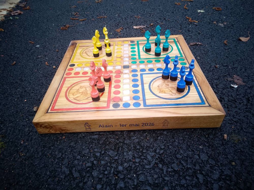 esso1 Posté(e) Janvier 20 Auteur Posté(e) Janvier 20 voila le dessus de l’échiquier. j'ai passer la ponceuse au grain 240, moins de 2 min j'aurais était plus vite si j'avais pas fait de large passe ( 5.6mm pour une fraise de 6mm, cela laisse des traces. par contre niveau temps, 30 min pour 2 passes 1 mm et 0.5 mm en 40x40 cm. au moins je ne serais plus obliger de le faire la main. le maintien à été fait par le coté, je vais me fabriquer des excentrique pour bloquer la pièce par le coté. pour le moment j'ai utiliser la technique de 2 triangles j’ai acheté l'aspi TTC, niveau bruit, bien mieux que mon aspi a copeau ou mon cyclonique. une fois le garage fermer je n'entends plus . par contre le mode automatique ne semble pas marcher. le soucis avec l'aspi et qu'il n'est pas assez lourd, le tuyaux le déplace et fait tomber le bac. je vais devoir bloquer le bac pour éviter qu'il bouge. 1