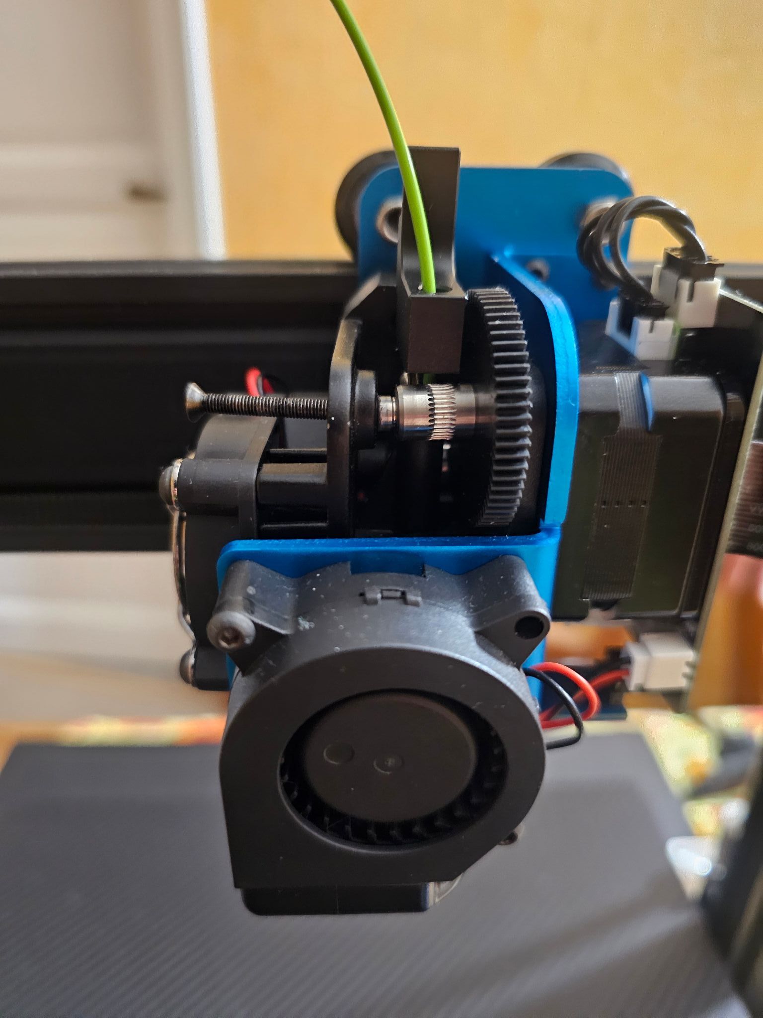 Silentredshirt Posté(e) il y a 1 heure Posté(e) il y a 1 heure Bonjour tout le monde. Comment je l'ai dit dans la section présentation, j'ai eu un petit soucis avec ma sidewinder x1 que je comptais upgrader un petit peu dans le futur. Suite à un arrachement du traitement du plateau ultrabase après une impression petg j'en ai profité pour ajouter un bed magnétique double face en PEI sur mon imprimante. Quitte à faire des modifs, j'ai remplacé les ressorts du plateau par des tampons silicone (que j'ai dû raccourcir), enfin j'ai remplacé le bras en plastique du levier de pression ainsi que la roue entraîneuse du filament par des versions en aluminium. Quelques impressions de test plus tard, je me lance dans une impression de 8h environ, tout va bien, cependant je me rends compte que la vis qui passe au milieu de la roue d'entraînement est quasiment sortie. Le problème étant que si je serre plus fort, la roue d'entraînement ne tourne plus. J'ai essayé de remettre l'ancien couple roue + levier en plastique et c'est pareil. J’ai cherché dans le forum mais je ne crois pas avoir vu ce problème, auriez-vous une idée ou des conseils ? Merci beaucoup !