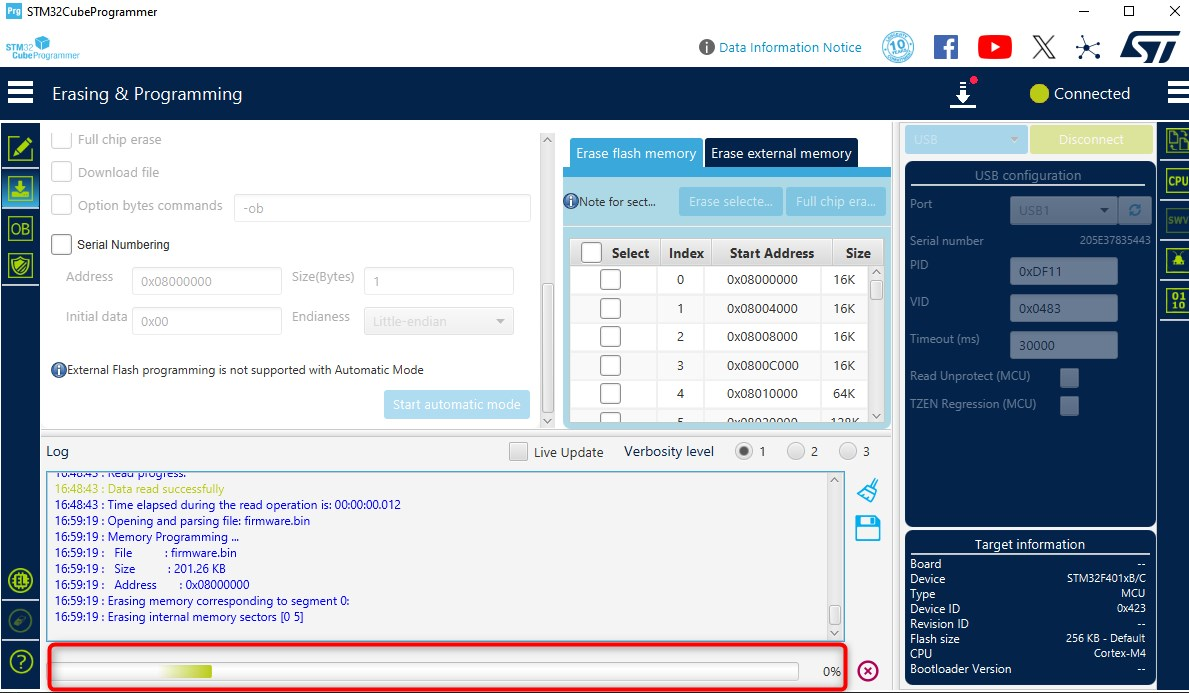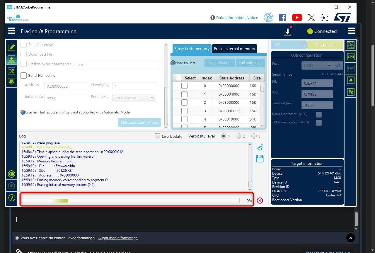 alainhautdoubs Posté(e) il y a 1 heure Posté(e) il y a 1 heure Bonjour à tous, Je viens de recevoir mon BLTouch. Je l'ai installé avec le support ci-joint. Ensuite j'ai fait ces branchement du BL touche avec 5 fils. Ensuite j'ai branché les files par rapport à la carte fille je crois que ça s'appelle comme ça. Marron - Rouge + Blanc P Noir - Jaune S J'ai ensuite téléchargé le fichier de Marlin dans Patched Source https://github.com/MarlinFirmware/Marlin/archive/2.1.x.zip et aussi les fichiers exemple des imprimantes. J'ai copié les fichiers exemples de la carte mère dans le dossier /Marlin. Configuration de PlatformIO dans Visual code Je suis allé sur le site de https://kaminokgy.com/fr/outils/marlin_environnements J'ai copié les informations de cette page vers le fichier platformio.ini dans le dossier Marlin, puis fermer. Préparation des fichiers Marlin Ouvrir le dossier Marlin 2.x Ouvrir les fichiers : Configuration.h Configuration_adv.h Je suis aller dans platformIO pour aller chercher les driver PARTIE 1 : Configuration.h (dans l’ordre) Aller dans Configuration.h Chercher : MOTHERBOARD → J'ai vérifié que j'ai bien la carte Artillery_Ruby J'ai cherché : custom_machine_name J'ai cherché BLTOUCH et l’activer : #define BLTOUCH J'ai cherché NOZZLE_TO_PROBE_OFFSET → J'ai défini le décalage entre la sonde et la buse (X, Y, Z) → Z = 0 ici (offset réglé sur l’imprimante ensuite) #define NOZZLE_TO_PROBE_OFFSET { -42, -7, 0 } J'ai cherché AUTO_BED_LEVELING_BILINEAR et l'activer : #define AUTO_BED_LEVELING_BILINEAR J'ai vérifier le GRID_MAX → Laisser par défaut, conseillé. #define GRID_MAX_POINTS_X 3 J'ai activé pour les 5 fils (important !) #define Z_MIN_PROBE_USES_Z_MIN_ENDSTOP_PIN J'ai obligé Marlin à utiliser le BLTouch comme endstop Z pour le homing : #define USE_PROBE_FOR_Z_HOMING J'ai activé Z_SAFE_HOMING Pourquoi obligatoire : Le BLTouch doit faire le homing au centre du plateau, sinon le Z-offset se décale ou échoue. #define Z_SAFE_HOMING J'ai mis rétablir le nivellement après chaque G28 : /** * Normalement, G28 désactive le nivellement à la fin. Activez l'une de ces options pour rétablir l'état de nivellement * précédent ou pour toujours activer le nivellement immédiatement après G28. */ #define RESTORE_LEVELING_AFTER_G28 J'ai mis aussi False pour ces deux champs : #define Z_MIN_ENDSTOP_INVERTING false #define Z_MIN_PROBE_ENDSTOP_INVERTING false PARTIE 2 : Configuration_adv.h J'ai ouvert Configuration_adv.h J'ai cherché BABYSTEP_ et activer : #define BABYSTEPPING et #define BABYSTEP_ZPROBE_OFFSET J'ai cherché PROBING_MARGIN et tout activer → Pour éviter que la sonde aille trop près du bord : #define PROBING_MARGIN 10 Voici les valeurs que j'ai mis #if PROBE_SELECTED && !IS_KINEMATIC #define PROBING_MARGIN_LEFT 40 #define PROBING_MARGIN_RIGHT 10 #define PROBING_MARGIN_FRONT 20 #define PROBING_MARGIN_BACK 10 #endif J'ai activé le menu à propos sur l'écran de l'imprimante #define LCD_INFO_MENU Pour finir j'ai mis en route la compilation en appuyant sur Buid : Voici le résultat : Citation ================================================================ [SUCCESS] Took 420.79 seconds ==================== Environment Status Duration -------------- -------- ------------ Artillery_Ruby SUCCESS 00:07:00.793 ================================== 1 succeeded in 00:07:00.793 ======================================================== Pour envoyer le fichier firmware.bin : J'ai dû faire un pond au niveau de l'imprimante 3D. Entre le 3v et boot0. J'ai déconnecté les deux nappes en dessous du LCD EXT1 et EXT2. J'ai branché juste seulement le câble USB. Ne pas branché le câble d'alimentation. J'ai ouvert le logiciel STM32 Cube Programmer j'ai cliqué sur USB et me connecter Ensuite nous pouvons voir que je suis bien connecté Je suis allé sur Erasing & Programming J'ai cliqué sur Browse en 1 et je suis allé dans le dossier /Marlin-2.1.x\.pio\build\Artillery_Ruby et j'ai choisi le fichier firmware.bin J'ai coché les 2 cases suivantes : Et ensuite j'ai cliqué sur 2 Start programming. Nous pouvons voir qu'il commence à envoyer le fichier sur l'imprimante Vous devez avoir ces messages là Ensuite ça Et enfin Attendre 2 minutes et nous pouvons débrancher le pont et aussi le câble USB. Maintenant j'ai rebranché le câble d'alimentation 220 volts et j'ai allumé l'imprimante. J'ai bien eu la mise à jour du firmware en 2.1.2.5. avec le BLTouch. C'est mon premier flashage de la carte mère. Tout n'est parfait. J'ai une question : Mon Z est très haut, il est à 220 mm de haut. Est-ce que j'ai oublié des choses dans le firmware ? Avez-vous une idée ? Merci Alain BLTouch-holder-V2.stl piastrina-Cut001.stl adj-bltouch-mount-4A-wing-_V2.stl En complément je ne sais pas si il y a tout le message. Vous devez avoir ces messages-là Ensuite ça Et enfin Attendre 2 minutes et nous pouvons débrancher le pont et aussi le câble USB. Maintenant j'ai rebranché le câble d'alimentation 220 volts et j'ai allumé l'imprimante. J'ai bien eu la mise à jour du firmware en 2.1.2.5. avec le BLTouch. C'est mon premier flashage de la carte mère. Tout n'est parfait. J'ai une question : Mon Z est très haut, il est à 220 mm de haut. Est-ce que j'ai oublié des choses dans le firmware ? Avez-vous une idée ? Merci