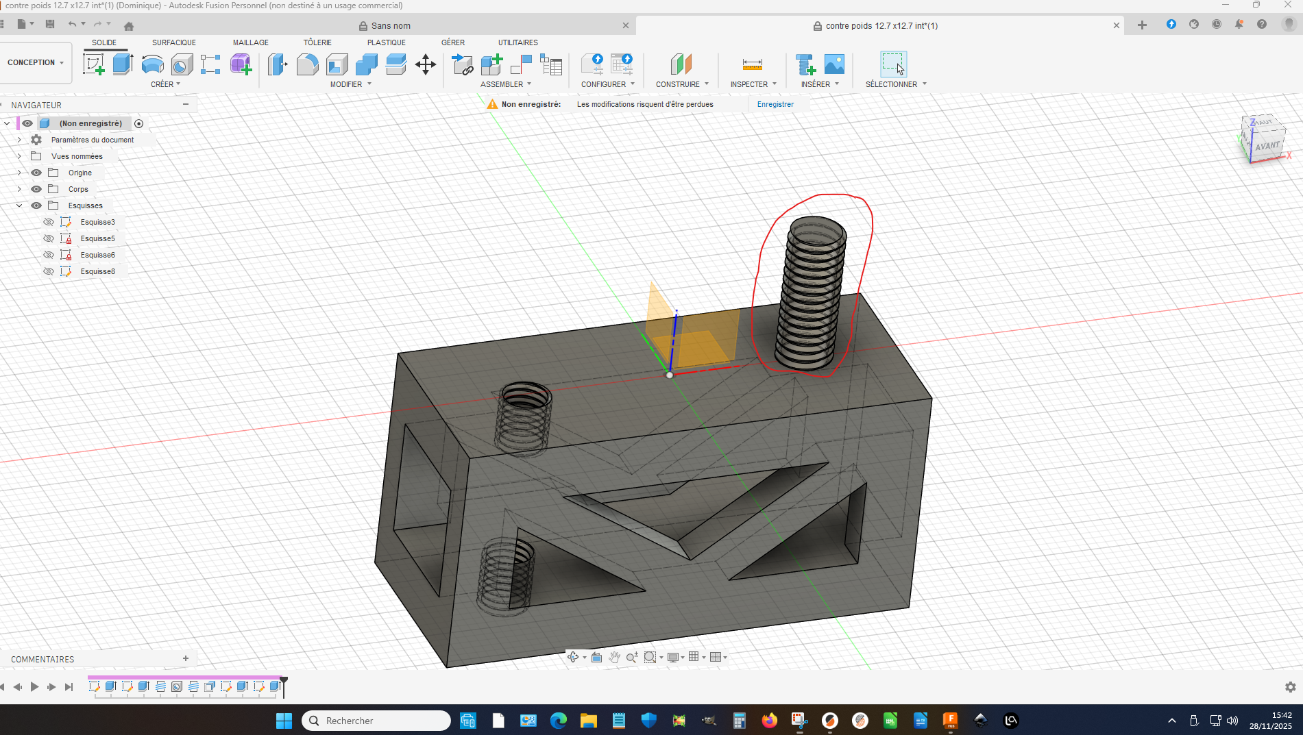 dom59 Posté(e) il y a 3 heures Posté(e) il y a 3 heures bonjour à tous J'ai dessiné la pièce sur la capture d'écran ci-jointe. Je voudrais savoir s'il est possible de modifier la vitesse d'impression à partir de la base du filetage M6 entouré en rouge. Quel est le Gcode pour le faire et si vous pouviez préciser la syntaxe du code ( ex passer la vitesse à 30mm/s) Je précise que je sais comment l'insérer à la bonne couche mais je ne connais pas le code. Je souhaiterais savoir la même chose pour modifier le remplissage lors de l'impression Merci à tous de vos réponses Cdtl