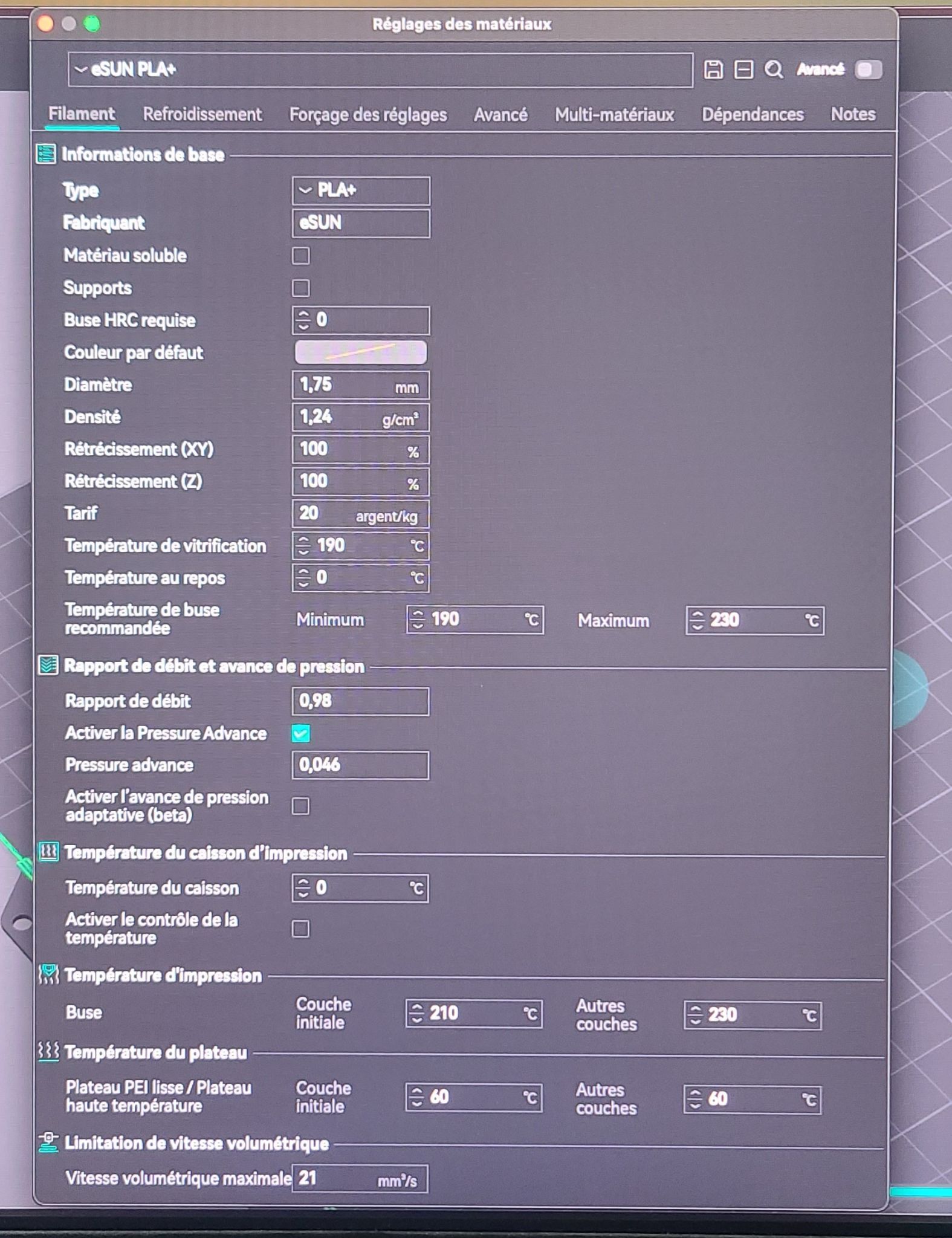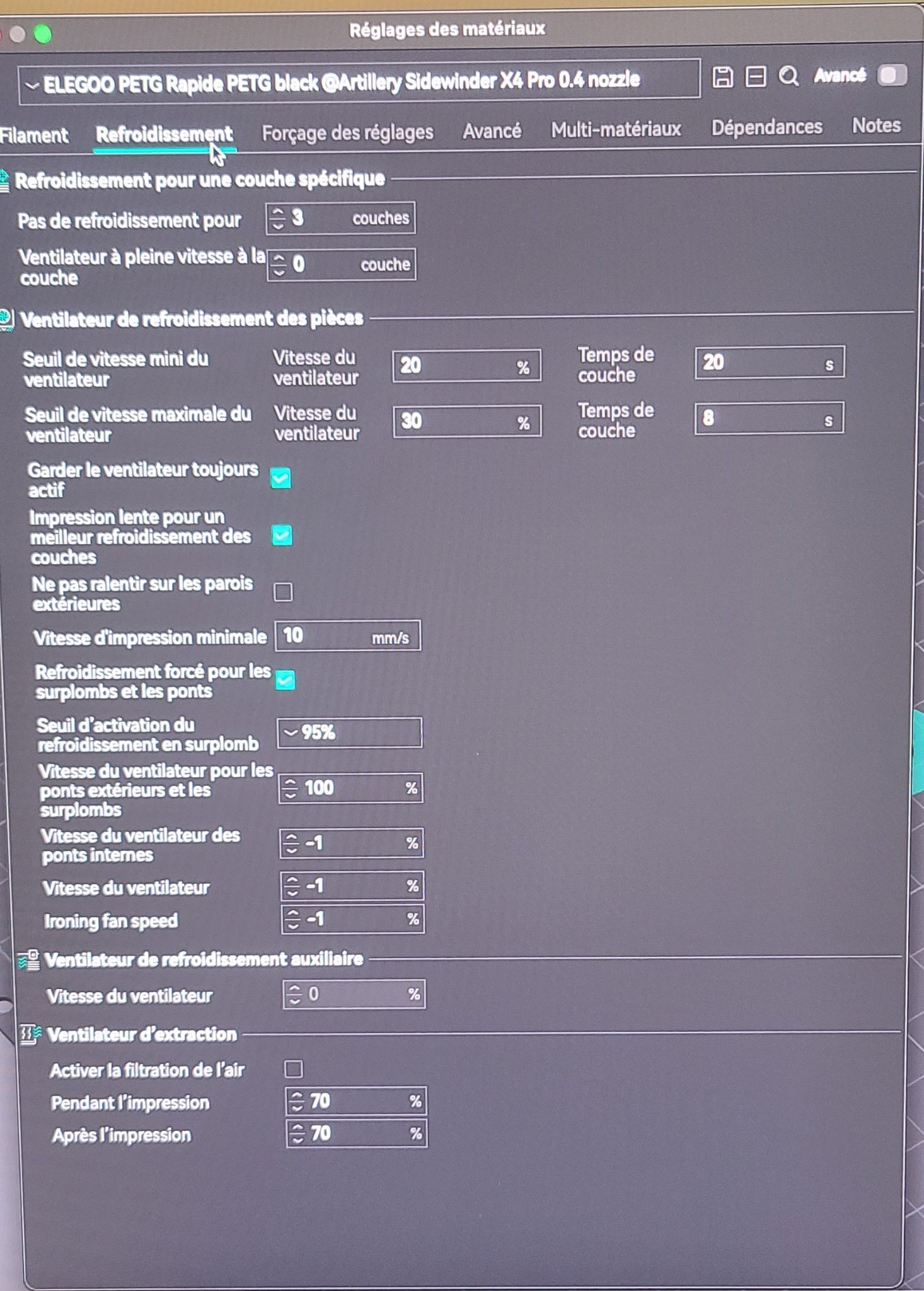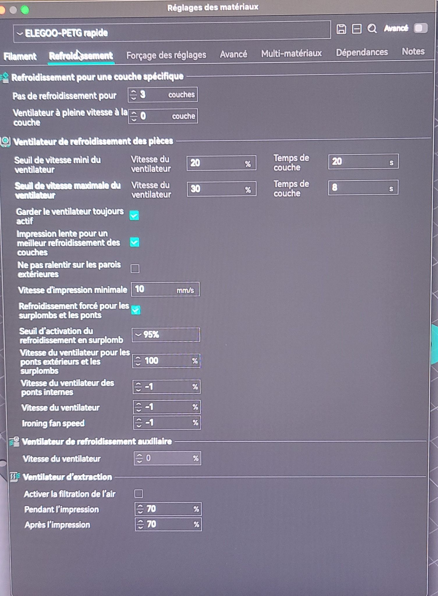 bubus Posté(e) il y a 1 heure Posté(e) il y a 1 heure Hello everybody, Je rencontré de nouveau un problème avec mon impression PETG sur un petit objet. Je constate que le filement ne sort pas de suite lors du trait sur le bord et lors du début d impression au milieu du plateau. En effet, il faut quelques secondes pour que le filement sorte, ce qui sur ma petit impression fait qu'elle ne tiens pas et je rate l impression. J ai fais un essai avec mon pla et le profile pla et la pas de problème. J ai bien un début d impression sur le bord et arrive au milieu l impression se lance immédiatement et s en problème. A quoi cela peut être du ? Reglage dans orca ou dans le profile PETG ? Voici mes profilés PETG et PLA. D'avance merci et passez de bonne fêtes.