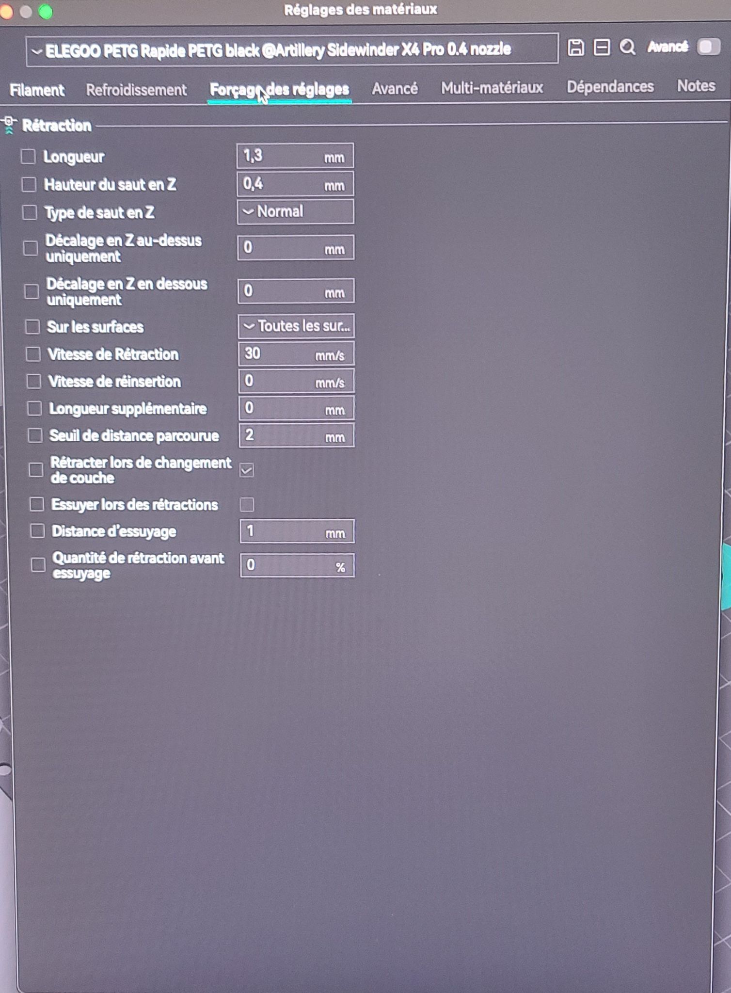 KpDp_3D Posté(e) il y a 1 heure Posté(e) il y a 1 heure (modifié) J'ai remarqué que le PETG est moins tolérant aux écarts de température que le PLA. Essaie de baisser la température d'impression progressivement. 255°C, je pense que tu n'es pas en bas de la plage acceptable et qu'il s'écoule trop vite. A tester bien sur... Modifié (le) il y a 1 heure par KpDp_3D