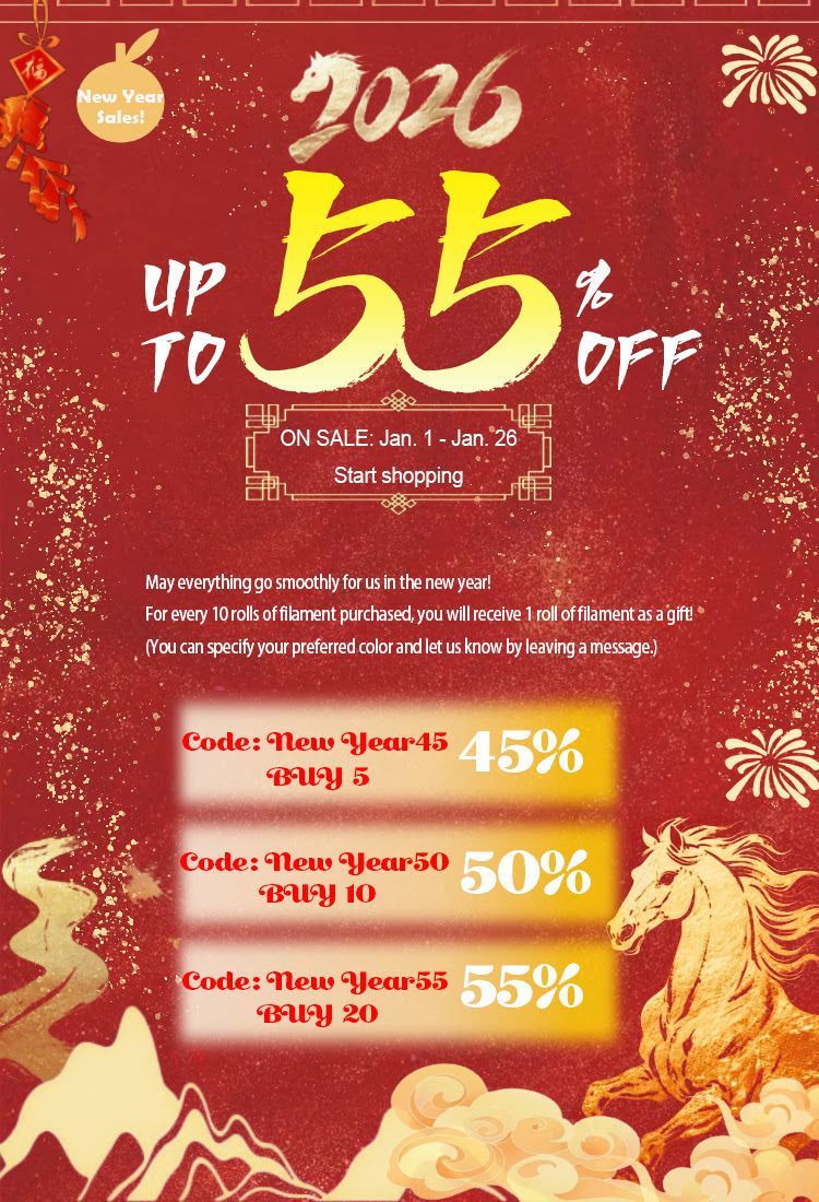 Motard Geek Posté(e) il y a 2 heures Posté(e) il y a 2 heures Eryone vient également de lancer sa promo Nouvel An 2026 sur sa boutique officielle, avec des remises qui montent vite si vous faites du stock (ou une commande groupée). Codes promo (au choix selon quantité) : Achetez 5 bobines → -45% avec le code NewYear45 Achetez 10 bobines → -50% avec le code NewYear50 Achetez 20 bobines → -55% avec le code NewYear55 Bonus sympa : 1 bobine offerte tous les 10 rouleaux achetés (vous pouvez demander la couleur en laissant un message lors de la commande) Livraison gratuite Livraison à domicile annoncée : 3 à 8 jours Si vous aimez les filaments de la marque et que vous comptiez refaire un stock PLA/PETG (ou tester une gamme), c’est clairement le moment