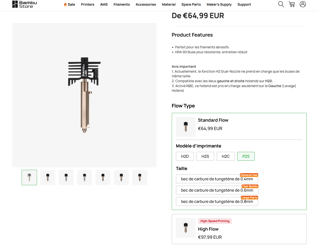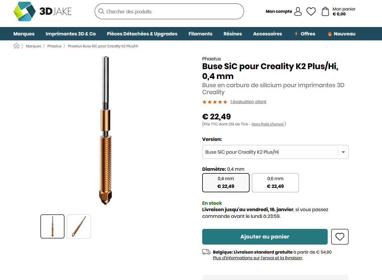 Poisson21 Posté(e) il y a 11 heures Posté(e) il y a 11 heures En trainant un peu sur Ali***, j'ai aussi trouver celles la en renforcé : Triangle lab avec une "pointe en céramique de zirconium" https://fr.aliexpress.com/item/1005010428376770.html?pdp_ext_f={"sku_id"%3A"12000052536494872"}&sourceType=1&spm=a2g0o.wish-manage-home.0.0&gatewayAdapt=glo2fra Coopération officiel entre E3D et creality pour une "Obxydien" https://fr.aliexpress.com/item/1005009203181985.html?pdp_ext_f={"sku_id"%3A"12000048287890124"}&sourceType=1&spm=a2g0o.wish-manage-home.0.0&gatewayAdapt=glo2fra chez phaetus, "endcoat" et "silicone carbide" (j'ai la silicone carbide, pas pour la dureté mais pour l'indice de friction diminué avec le revêtement intérieur) https://fr.aliexpress.com/item/1005008361160389.html?spm=a2g0o.order_list.order_list_main.18.21755e5bxu3Vah&gatewayAdapt=glo2fra