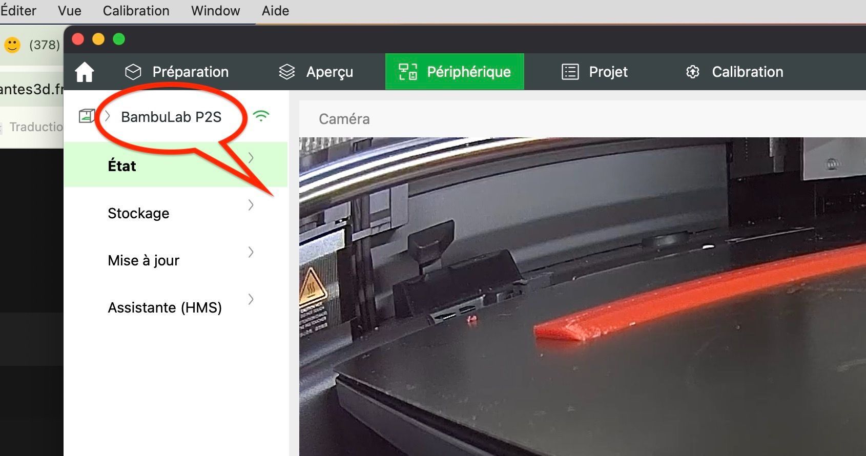 pleinair37 Posté(e) il y a 1 heure Posté(e) il y a 1 heure (modifié) Salut, déjà est-ce que dans l'onglet Périphérique ton imprimante apparait (en haut à gauche tu dois avoir BambuLab A1) : Modifié (le) il y a 1 heure par pleinair37