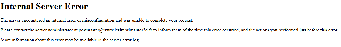 Kachidoki Posté(e) il y a 1 heure Posté(e) il y a 1 heure Bonjour, Déjà il y a quelques jours, et encore là, j'ai eu des erreurs 500 sur le domaine www.lesimprimantes3d.fr Testé sur deux connexions différentes, et deux testeurs en ligne. Down pour tout le monde. Le serveur aurait-il quelques hoquets ?