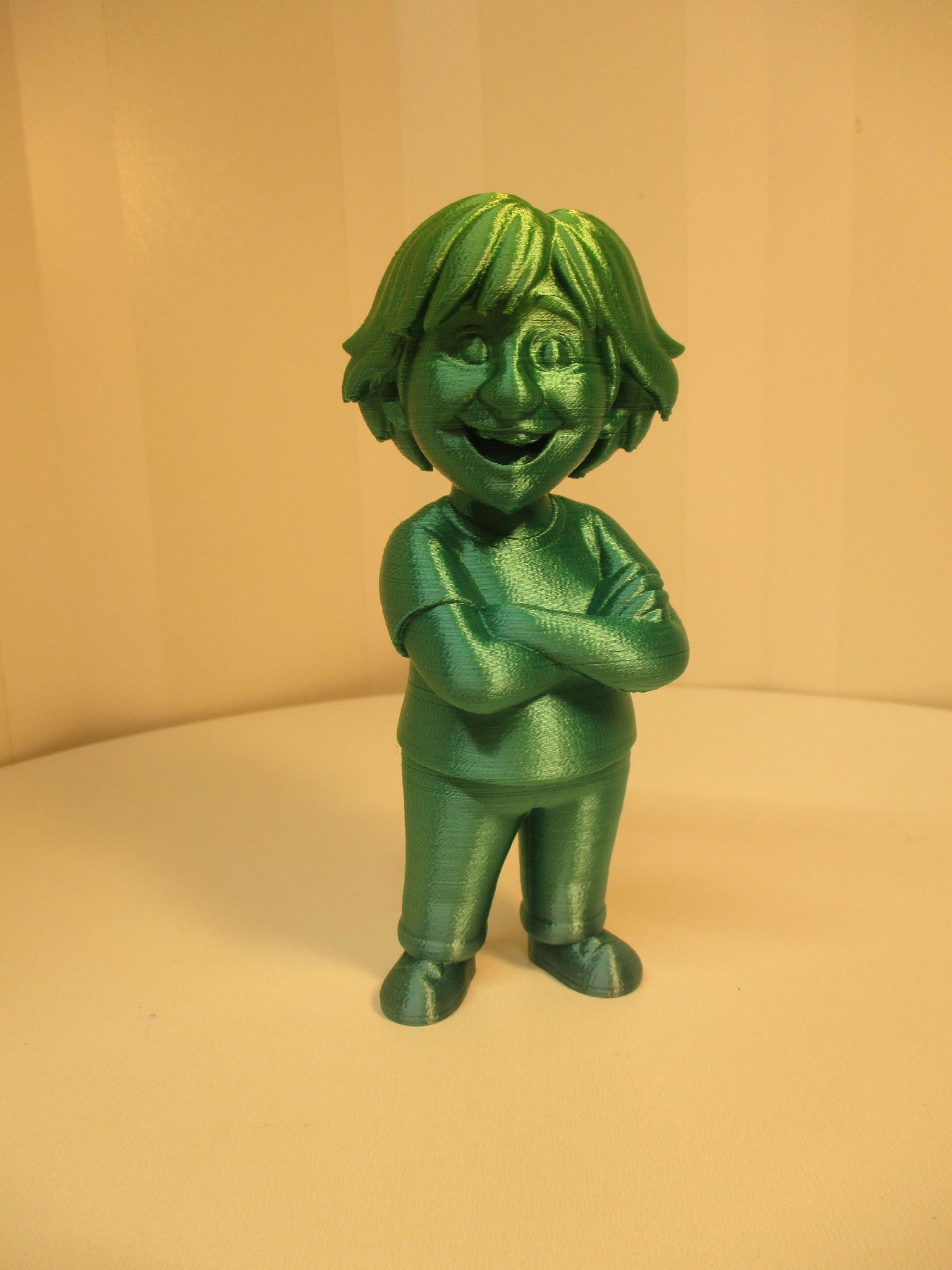Alain D. Posté(e) il y a 1 heure Posté(e) il y a 1 heure Rien d'extraordinaire, mais je suis content du résultat final ! C'est un peu la suite de ce message : L'année dernière, en voyant pas mal de Starter Pack assez sympatique, je me suis dit "Pourquoi pas le mien ?". J'ai trouvé ce site pour les explications : Voici l'astuce pour créer votre Starter Pack avec ChatGPT Un peu de blabla et une photo plus tard : "Crée un rendu 3D de haute qualité d'une figurine en style cartoon, présentée sous blister, à la manière d'un jouet de collection. Le fond en carton est bleu et porte une étiquette de jouet rétro. En haut au centre, en grandes lettres majuscules et en gras, dans un cadre jaune au contour noir, écris "STARTER PACK". Juste en dessous, tu peux écrire Black Cat en plus petit en bas à droite. En haut à droite, un badge bleu circulaire indique "ACTION FIGURE". En haut à gauche, une petite bulle blanche indique "4+". Le personnage se tient debout, moulé dans une boîte en plastique transparente fixée sur un support en carton plat. Il doit ressembler à la photo que je joins. Son visage est presque chauve, un peu barbu, avec une pose main sur les hanches. Le ton général est léger et réaliste. La figurine porte un tee shirt rouge et un jean bleu. Sur le côté de la figurine, intégrés dans des moules en plastique distincts, expose 3 accessoires miniatures : un casque moto, une radio CB, une caisse à outil. Chaque accessoire s'insère parfaitement dans son propre compartiment moulé. L'emballage est photographié ou rendu avec des ombres douces, un éclairage uniforme et un fond blanc épuré pour donner l'impression d'une séance photo commerciale. Le style doit allier réalisme et stylisation du dessin animé 3D, à l'image de Pixar ou des maquettes de jouets modernes. Assure-toi que la disposition et les proportions du produit ressemblent à celles d'un véritable jouet vendu en magasin." Je vous laisse deviner qui c'est... Puis en fin d'année, je suis tombé sur une explication comment avoir un rendu 3D depuis un Starter Pack en utilisant ce site : Tripo Web Le rendu est plutôt réussi (fichiers générés en 3mf, glb et stl) : Quelques heures plus tard, hauteur 120mm, épaisseur de couches 0,16mm : 3