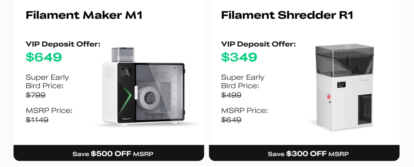 PPAC Posté(e) il y a 30 minutes Posté(e) il y a 30 minutes il y a une heure, JoOj a dit : Annoncé par le blog il y a quelques semaines Pour faire le lien ( Comme il y a plusieurs commentaires qui parlent du "Creality Filament Maker M1" et "Creality Shredder R1" ) 2