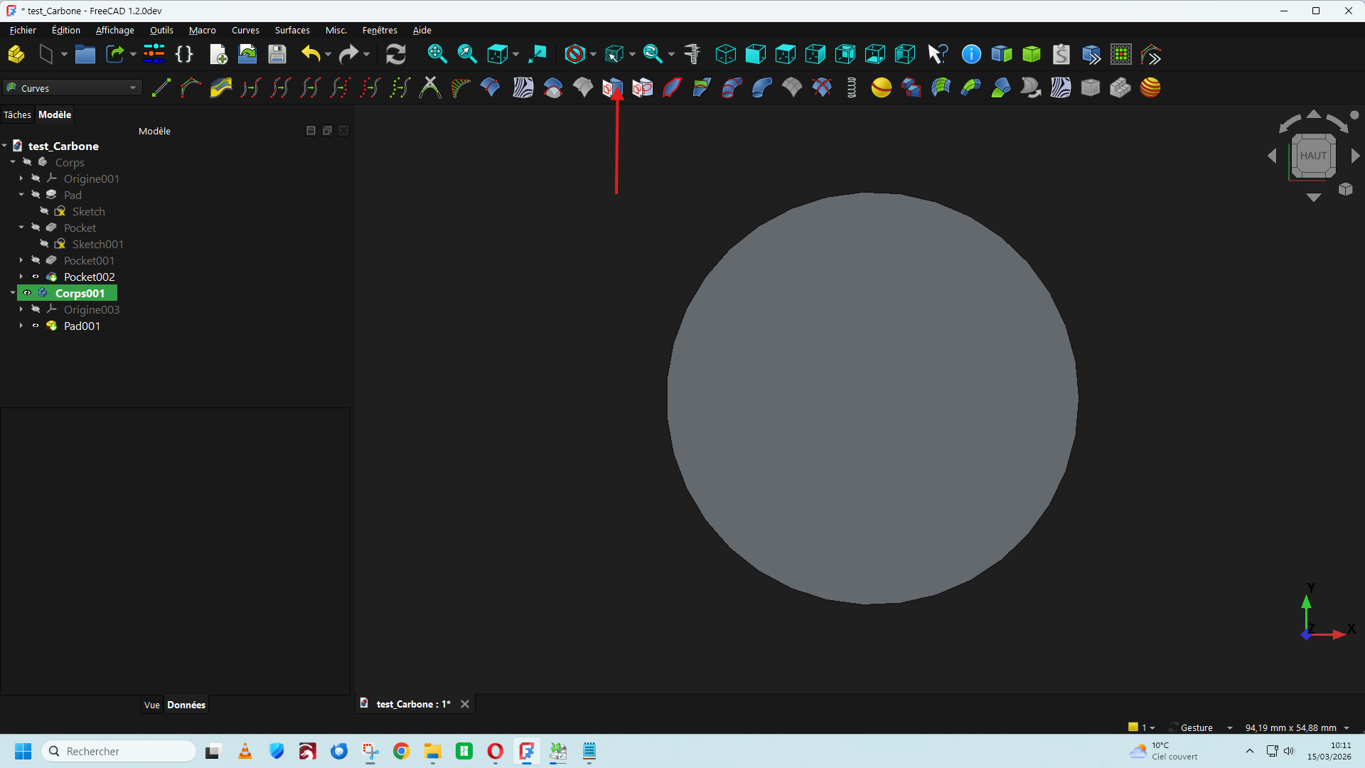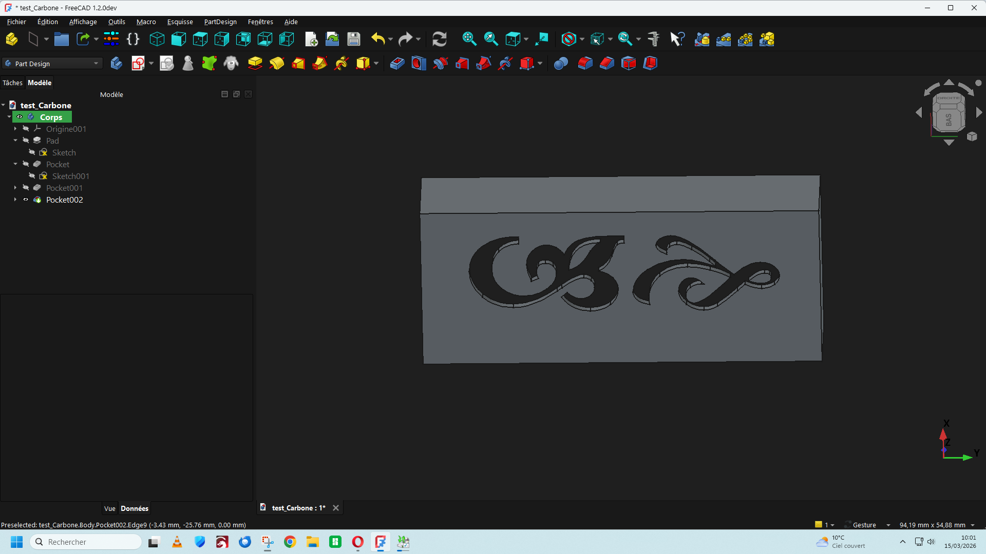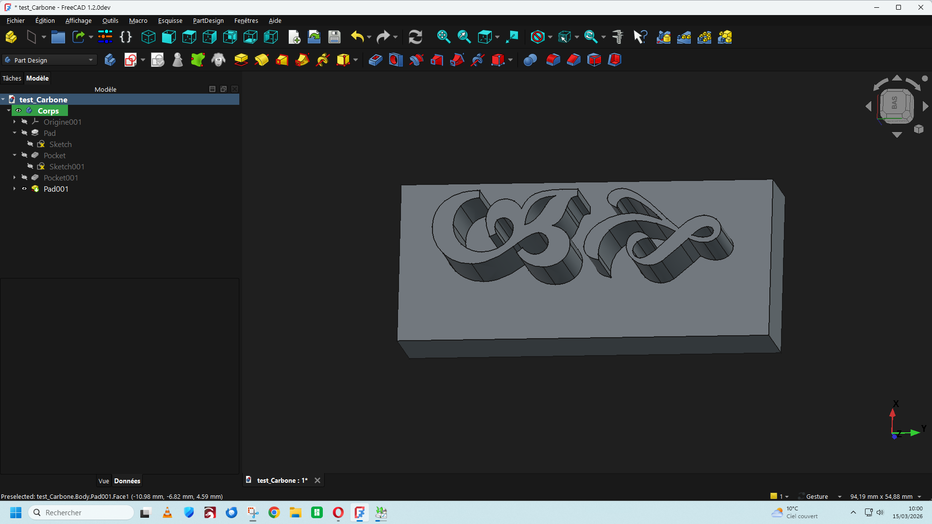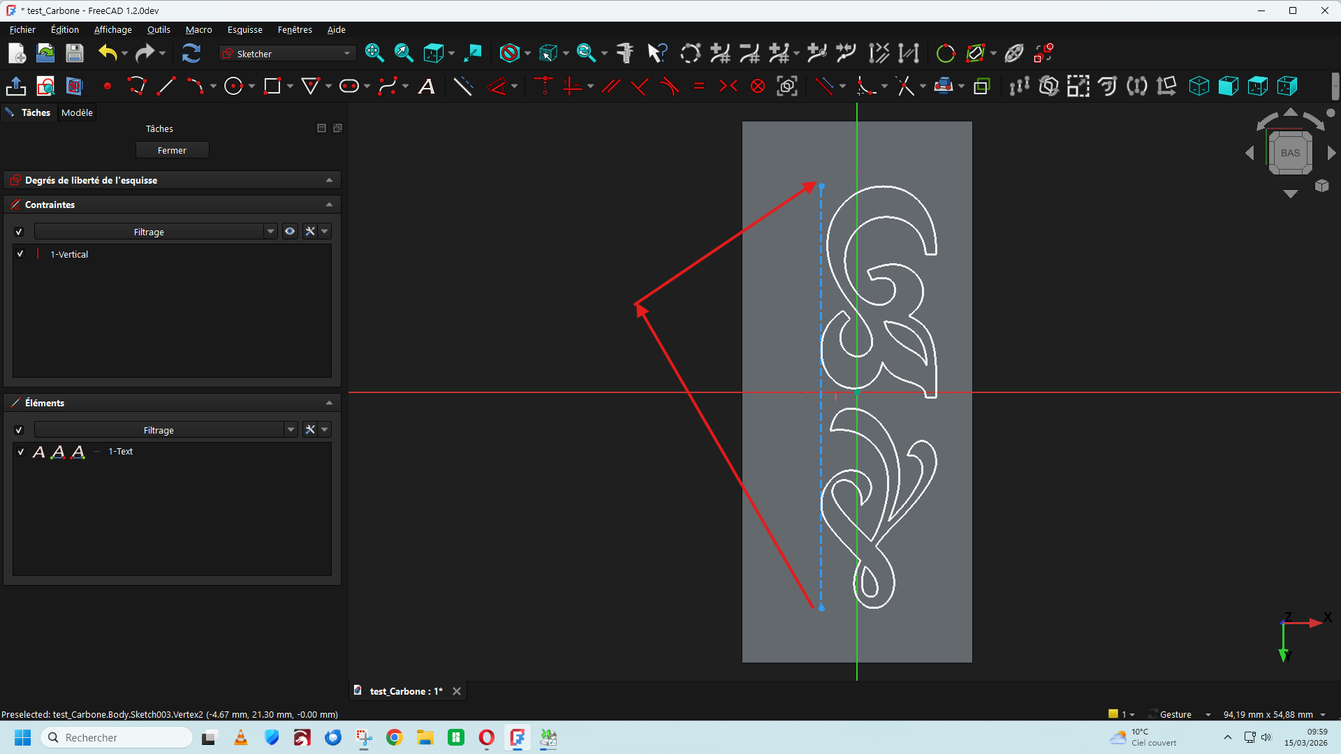 lariflette77 Posté(e) il y a 1 heure Posté(e) il y a 1 heure Bonjour, Dans la version de FreeCad 1.2 DEV du 11/03/2026 Une nouvelle fonction est apparue dans la barre de menu (A) qui permet d'insérer un texte directement ce qui facilite le travail d'insertion d'un texte ou une lettre de police de caractère stylisée sur une surface plane ou cylindrique. https://github.com/FreeCAD/FreeCAD