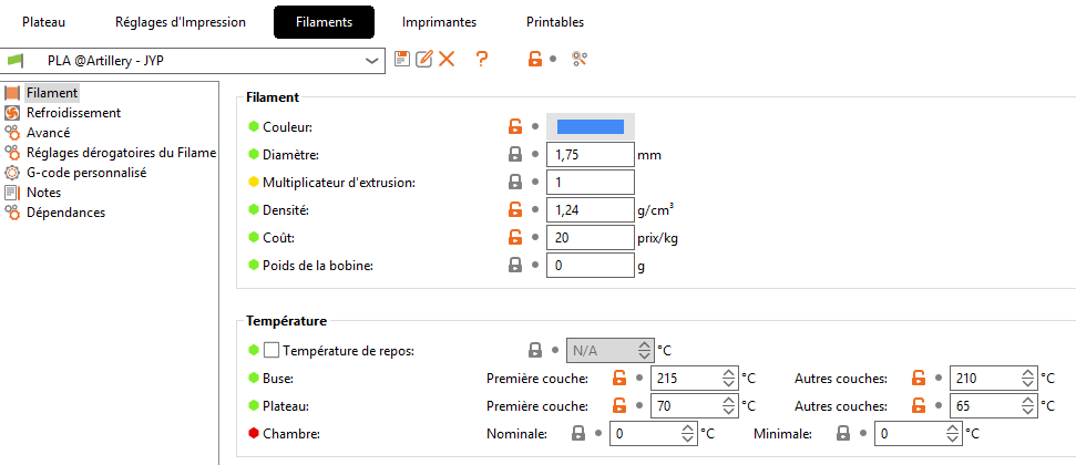 Je surveille la température qui reste à 65° au changement et il semble qu'elle ne reprenne pas la température de 1ere couche de 70° pour le 2eme objet.