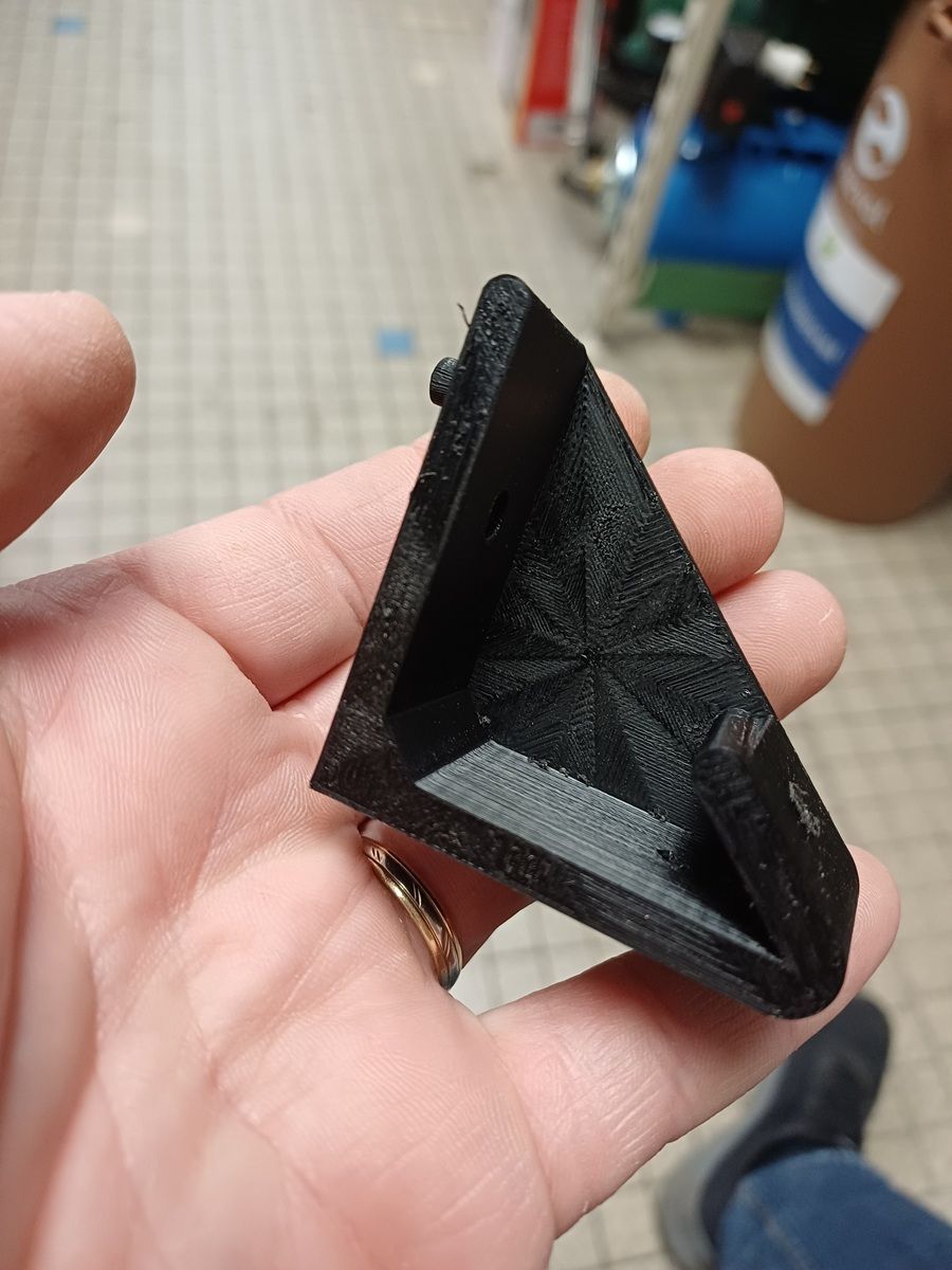 VincentSanit Posté(e) il y a 1 heure Posté(e) il y a 1 heure Bonjour, Je me présente, Vincent de Libourne dans le 33. 44 ans et je me lance enfin dans l'impression 3D. J'ai souvent fait des plans pour des constructions de meuble mais là c'est un autre monde. Je vais très probablement poser des questions stupide donc soyez indulgent avec moi Voici ma première fabrication.. (Support pour Quadlock pour ma moto) 1