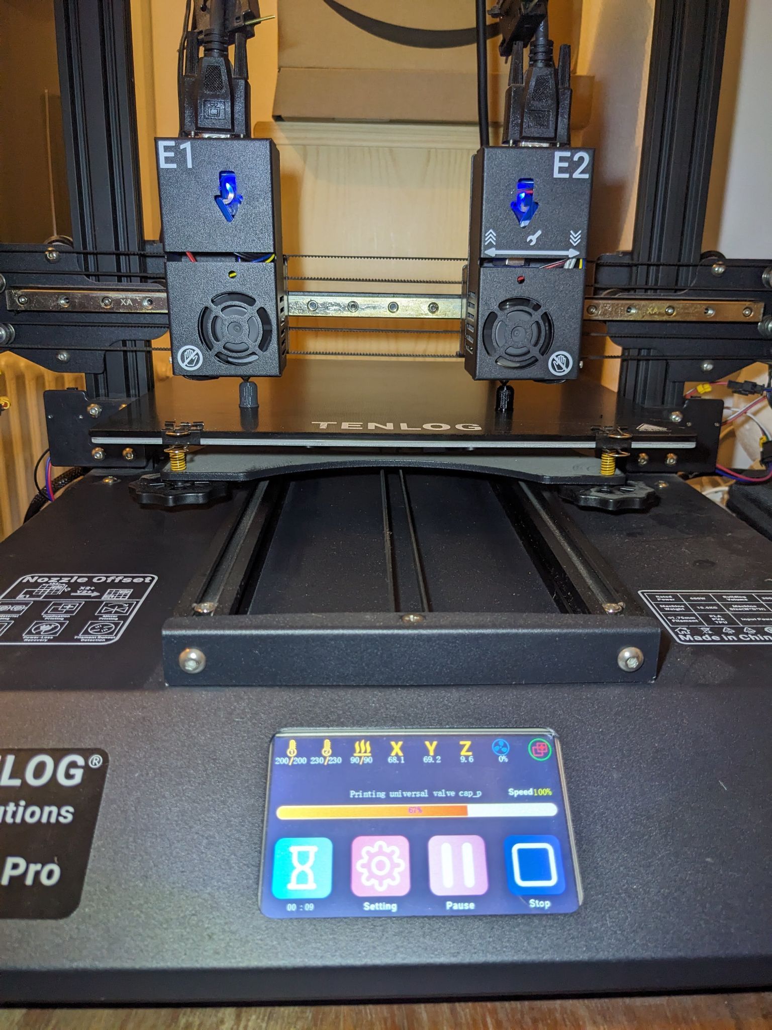 Nekzuris Posté(e) il y a 1 heure Posté(e) il y a 1 heure Bonjour, Je viens de dépoussiérer ma Tenlog TL-D3 Pro et je voudrais la remettre en parfait état de fonctionnement. Je sais qu'il y a déjà beaucoup de posts à ce sujet sur le forum, mais justement il y en a trop, je suis un peu perdu et je ne sais pas lesquels sont encore à jour vu qu'ils sont assez vieux. C'est un modèle de 2021 et elle a plusieurs problèmes : - l'écran freeze presque toujours entre 66-68 %, l'impression continue et se finit sans problème mais je ne peux plus contrôler l'imprimante avec l'écran. Elle ne le faisait pas au début et je n'ai jamais touché au firmware, j'espère qu'une mise à jour résoudra le problème. - le bip de démarrage et les 5 bips en fin d'impression sont insupportables, comment les désactiver ? ou à la limite en laisser un seul à la fin. - le plateau est concave, -0.3 mm au centre, du coup j'imprime sur les bords, mais je sais qu'avec un firmware moderne il est possible d'envoyer des valeurs de correction dans le G-code sans avoir besoin d'installer une sonde de niveau automatique. Aussi, je pense que ça n'a rien à voir avec la concavité du plateau, mais je voudrais remplacer le verre Ultrabase par une feuille PET/PEI pour une meilleure accroche du PETG, ce modèle est-il bien ? https://www.amazon.fr/gp/product/B0CXXDJ7ZL - pour les impressions bi-matériaux, je voudrais installer des brosses de nettoyage, est-ce que celles-ci sont bien et toujours compatibles avec mon ancien modèle ? https://www.innocube3d.com/products/cleaning-nozzles-metal-brush - le ventilateur de buse ne refroidit bien que d'un côté, j'ai vu que les nouvelles en ont 2, est-ce que je peux faire la modification facilement sur mon modèle ? Voilà, je remercie d'avance celles et ceux qui pourront m'aider. Louis