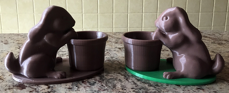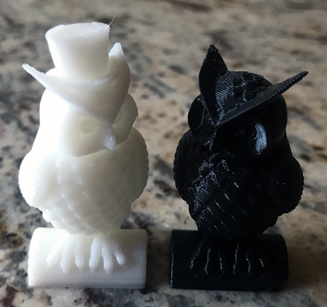 macandnews Posté(e) Avril 2, 2018 Posté(e) Avril 2, 2018 Bonjour, Ce week-end, mon imprimante n'a pas eu le temps de refroidir. J'ai imprimé un cube articulé en une seule pièce pour voir si ça fonctionne ou si j'allais obtenir un bloc de plastique collé ! Ben, impression réussie, les articulations fonctionnent et sont très souples. Le classique couple de hiboux en noir/blanc pour changer. J'ai imprimé un sifflet pour voir si ça fonctionne et je confirme qu'il est bien bruyant !! Mesuré à 124 dB avec une application sur mon iPhone !! Un petit money_Cat pour une amie qui adore les chats. Et pour finir, mes plus grosses pièces, 8 h 30 d'impression chacune. Un lapin de Pâques faisant office de mini pot de fleurs. Voilà, c'est déjà pas mal pour un week-end. 2