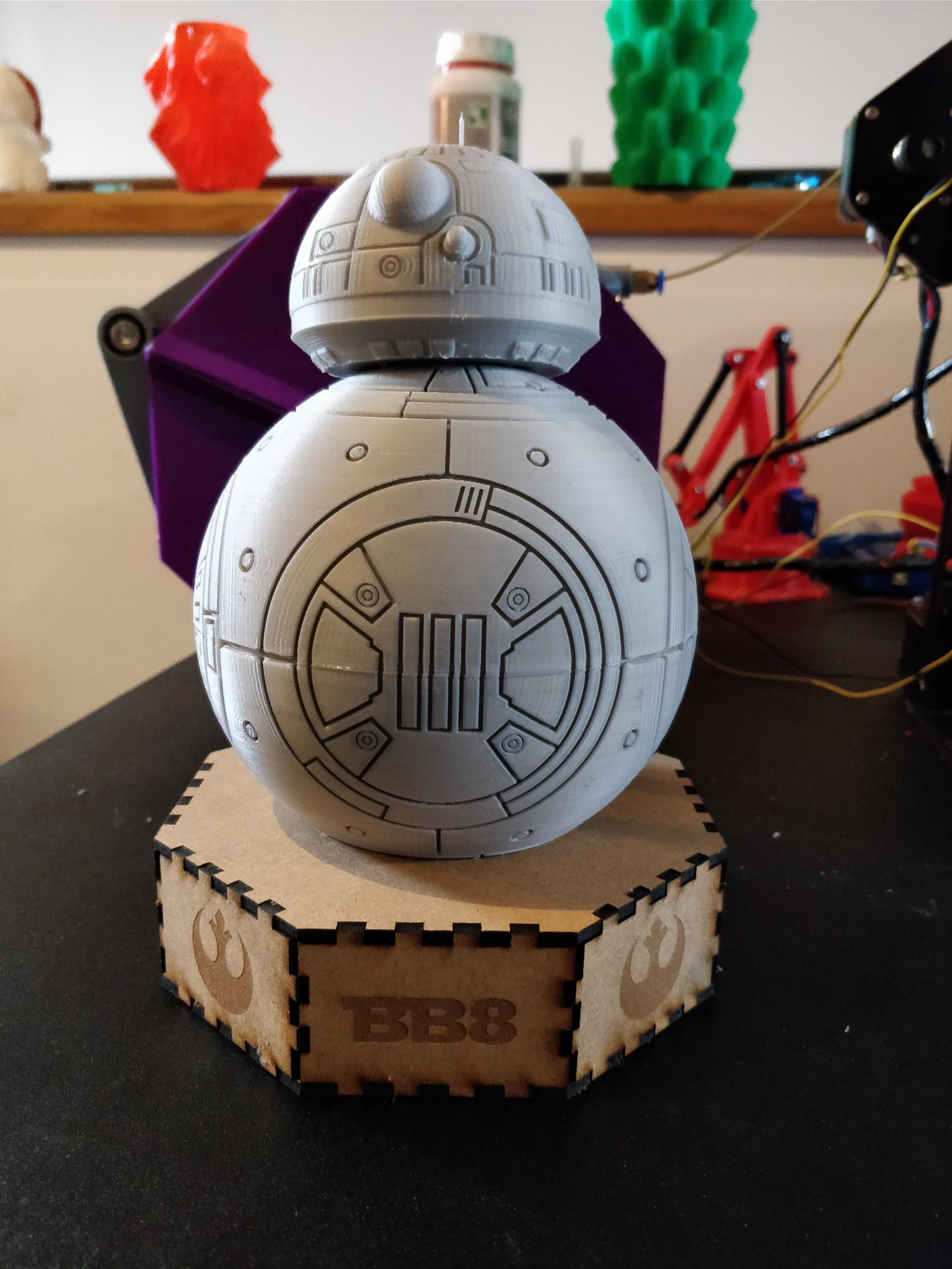 Nebraan Posté(e) Avril 12, 2018 Posté(e) Avril 12, 2018 Et voila un petit BB8 en PLA gris de chez Grossiste 3D en 0,15. Il fait 12.7 cm de diamètre au niveau de la sphère. J'ai fait la base moi même avec ma CNC Laser. Quand je retrouve le lien je vous l'envoi.