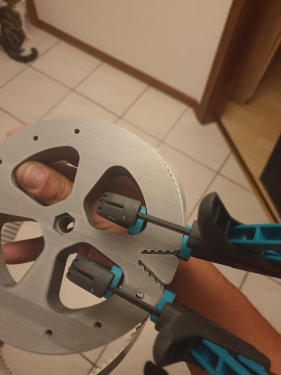 Vinchator Posté(e) Mai 30, 2019 Posté(e) Mai 30, 2019 Je trouve que les dents de la courroie T5 en polyuréthane blanc avec le noyau en acier sont décalées par rapport au profil denté de la poulie car la courroie est assez rigide donc je laisse ces serres joints pour bien donner la forme courbe à la courroie.