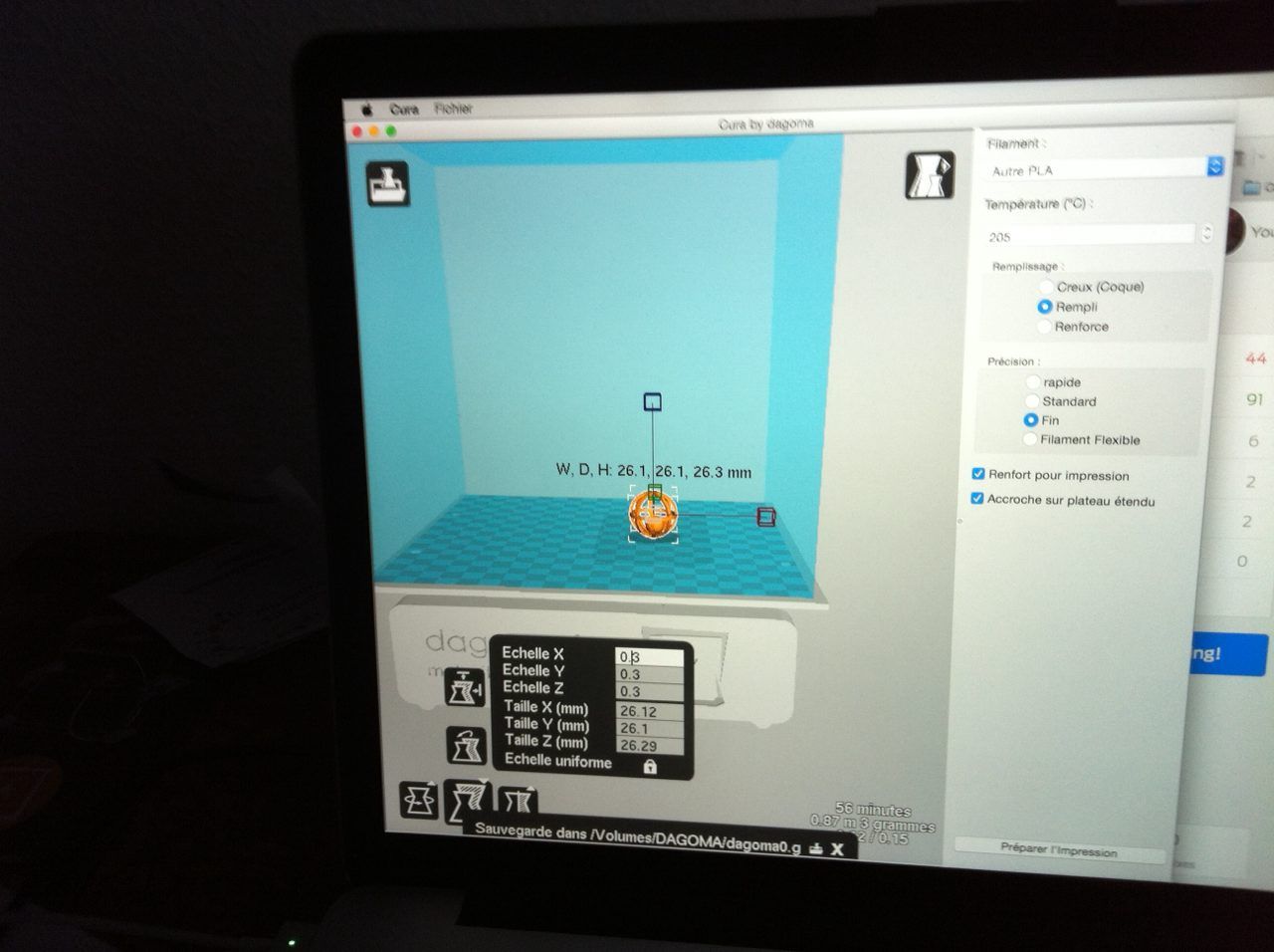 zazeur Posté(e) Février 19, 2016 Posté(e) Février 19, 2016 (modifié) Le support à l'intérieur n'était pas trop chiant à retirer ? J'ai cru comprendre que certain slicer permettent de choisir justement d'avoir des supports externes seulement. Je ne sais pas si Cura normal le propose, si oui je verrai s'il est possible de tweaker la version Dagoma pour pouvoir choisir. Edit : D'ailleurs pour ta pièce l'auteur indique qu'il n'est normalement pas nécessaire d'utiliser un support Edit 2 : Il faudrait, comme toi, que je pense à upload mes "makes" sur Thingiverse au fur et à mesure. Modifié (le) Février 19, 2016 par zazeur 1