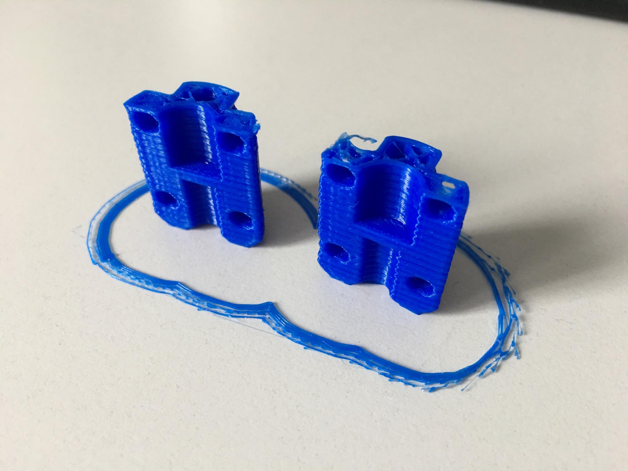 accromeca Posté(e) Aout 2, 2017 Auteur Posté(e) Aout 2, 2017 (modifié) De plus, le ressort de l'extrudeur plastique est une daube finie qui se détend, une semaine sans toucher l'imprimante et j'ai du le démonter pour le retendre. Je suis aussi de ton avis que traiter les conséquences ne sont jamais les solutions mais quand je monte la buse en l'air puis demande une extrusion et que je vois la matière sortir de travers, je me demande si le trou de la buse est bien fait. Voici ci-dessous ma dernière impression que j'ai du arrêter avant la fin car une des pièces s'est décollée... (j'ai changé mes anti-wobble pour des nouveaux que je pensais meilleurs mais au final je vais revenir aux anciens. Modifié (le) Aout 2, 2017 par accromeca