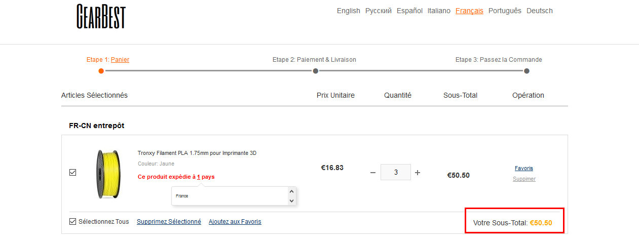 N3rja Posté(e) Aout 29, 2017 Auteur Posté(e) Aout 29, 2017 Bah oui que je les est payer plus chere que 16.83 j'ai payer 24 et il mon assasiner avec les frais de port et la quand je regarde le prix des tronxy 1kg je trouve toujours plus chere il y a un truc qui m'echappe Edit: quand je regarde sur l'app android c'est plus chére que sur le navigateur [emoji20]Je me suis fait enflé par gearbest [emoji21]Envoyé de mon SM-A510F en utilisant Tapatalk