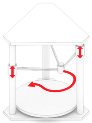 Les imprimantes Delta se caractérisent par une surface d’impression fixe et l’utilisation de trois moteurs qui, travaillant de concert, positionnent la tête d’impression (hotend) en ajustant sa position latitudinale, longitudinale et sa hauteur. Ces moteurs actionnent trois bras, dont la forme triangulaire a donné son nom à ce type d’imprimante (delta = Δ). Conçues pour une impression rapide grâce à un extrudeur léger et au contrôle précis des trois moteurs (nécessitant souvent un système 32 bits pour les calculs complexes), elles offrent un aspect visuel attrayant en fonctionnement. Cependant, elles présentent une surface d’impression circulaire et relativement petite, ce qui limite la taille des objets imprimés. La vitesse élevée peut compromettre la précision, et leur complexité mécanique, le manque d’informations et le coût des pièces rendent le dépannage difficile, les excluant souvent d’un usage bureautique courant. L’utilisation d’un extrudeur Bowden, nécessaire pour la légèreté, peut également restreindre le type de filaments utilisables.